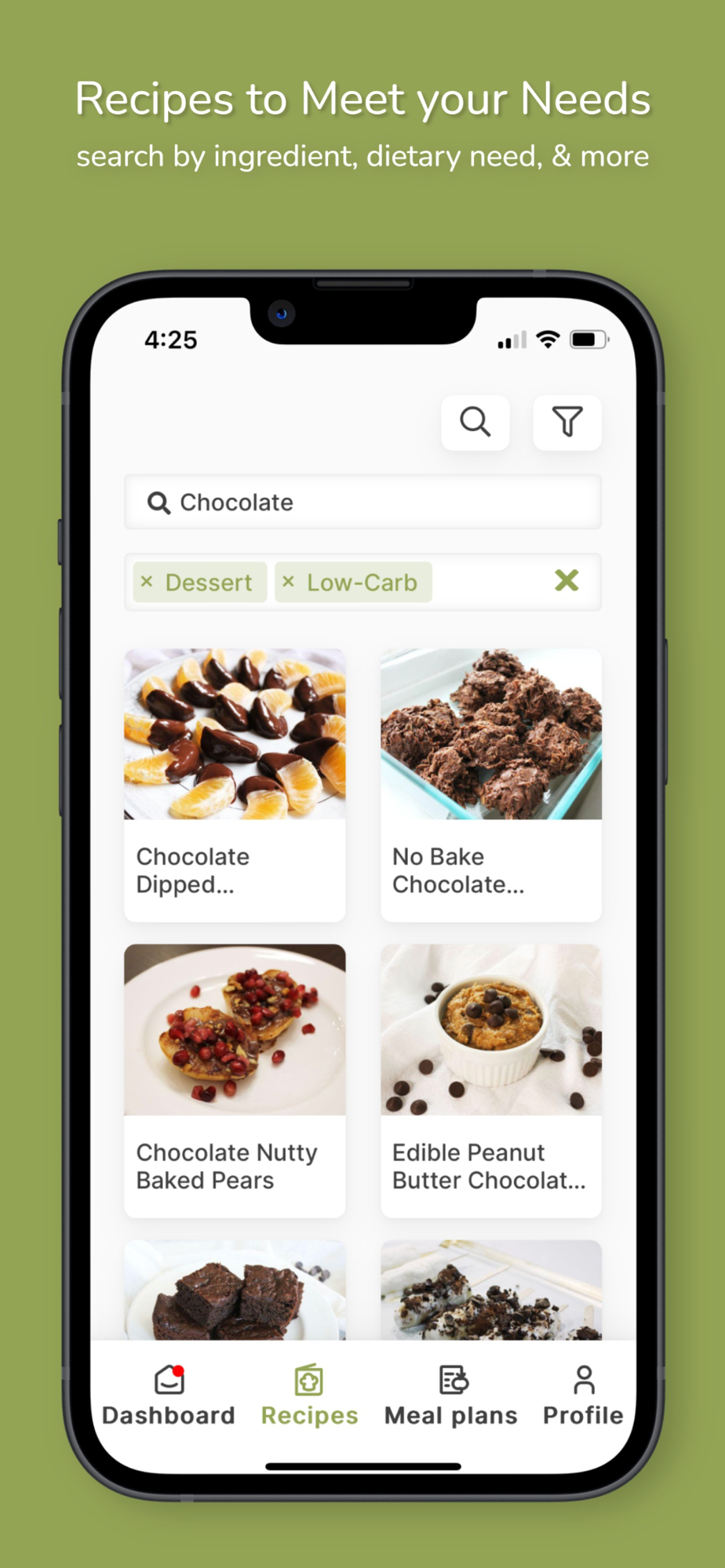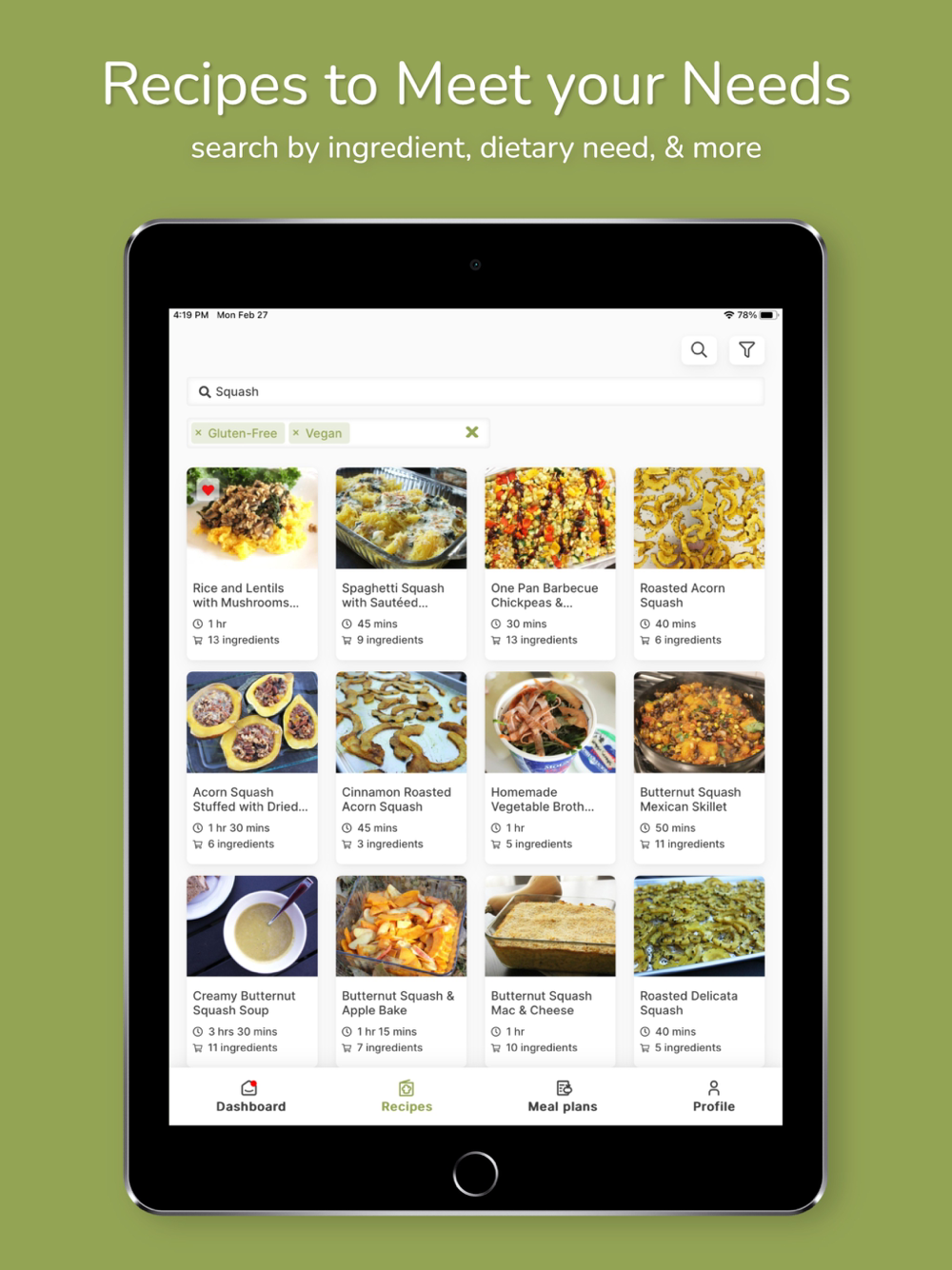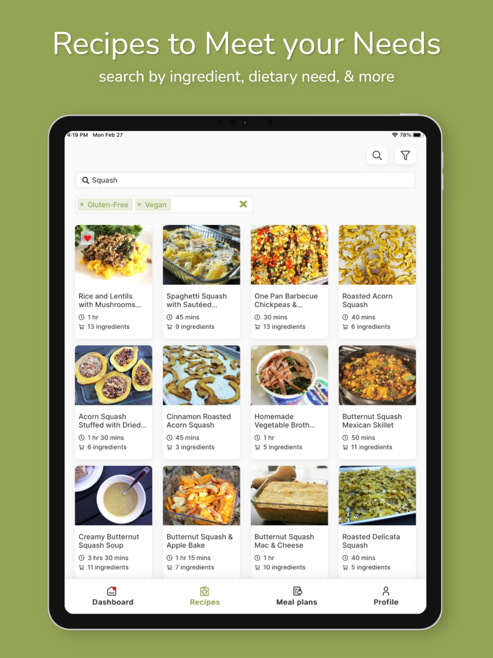 SEARCHABLE DATABASE OF 800+ HEALTHY RECIPES: Gain immediate access to over 800 dietitian-written and approved recipes in the app. Search for recipes by dietary need, season, or type; OR search by name of the recipe or ingredient. Use multiple filters to find exactly what you need.