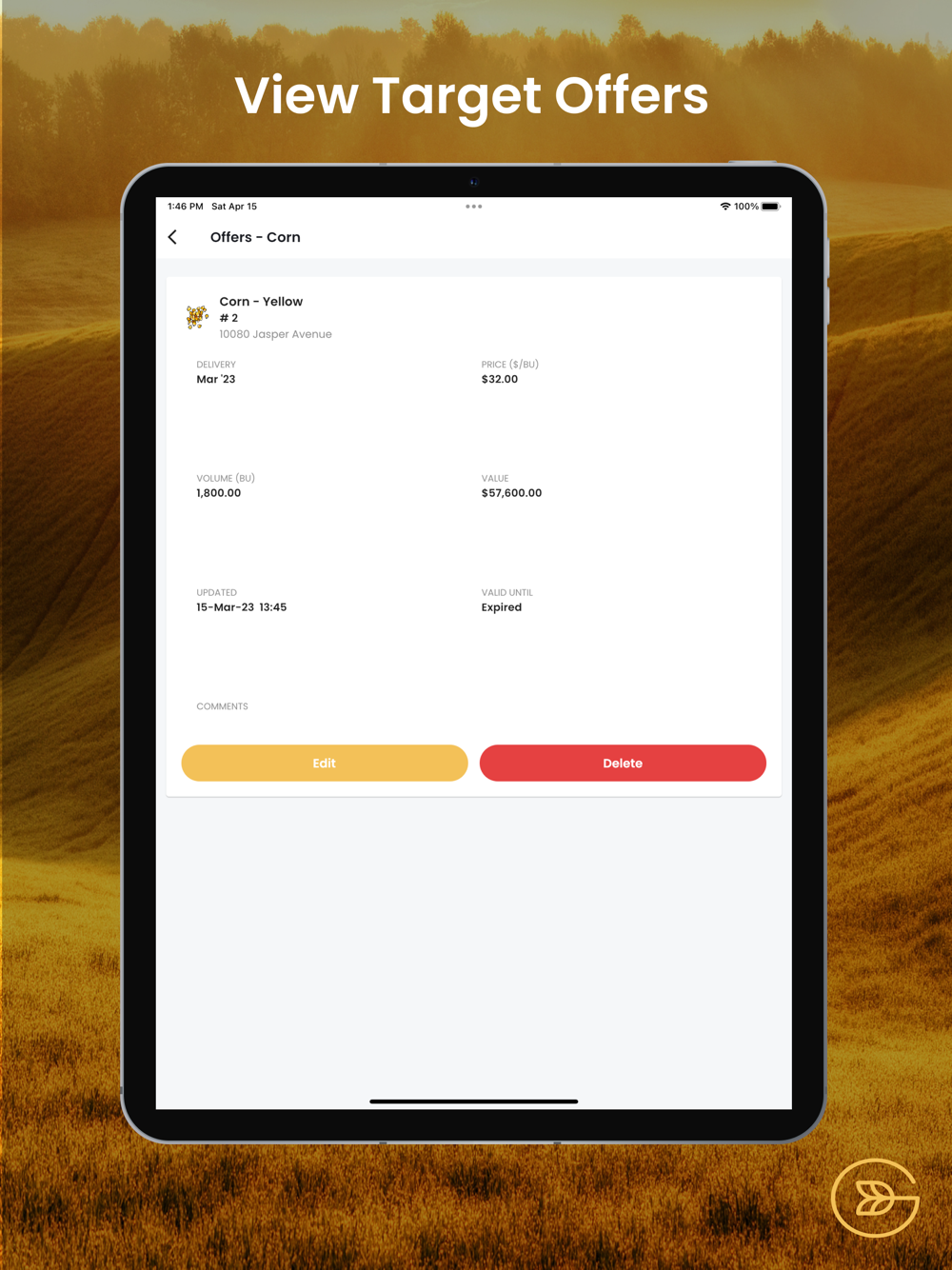 View live cash bids and sell grain instantly – no more waiting on call backs! With the app timely alerts you will never miss market opportunities.