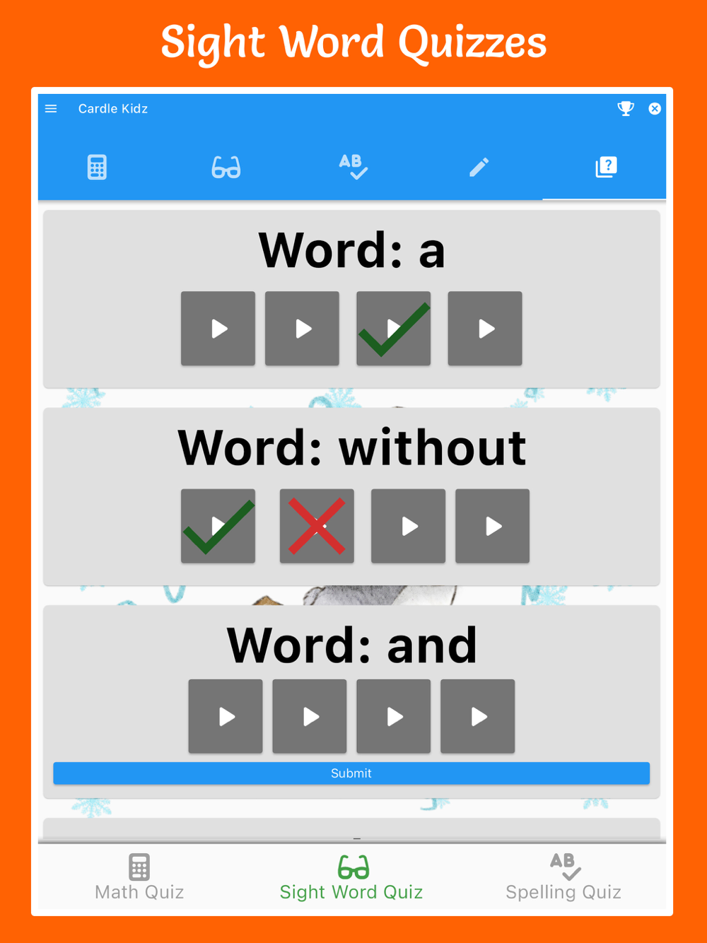 Cardle Kidz—a seamless journey to mastering math, sight words, and spelling! Engage in active learning using interactive flashcards, enhancing memory and understanding. Our approach breaks down complex topics into bite-sized pieces, making comprehension a breeze for kids.