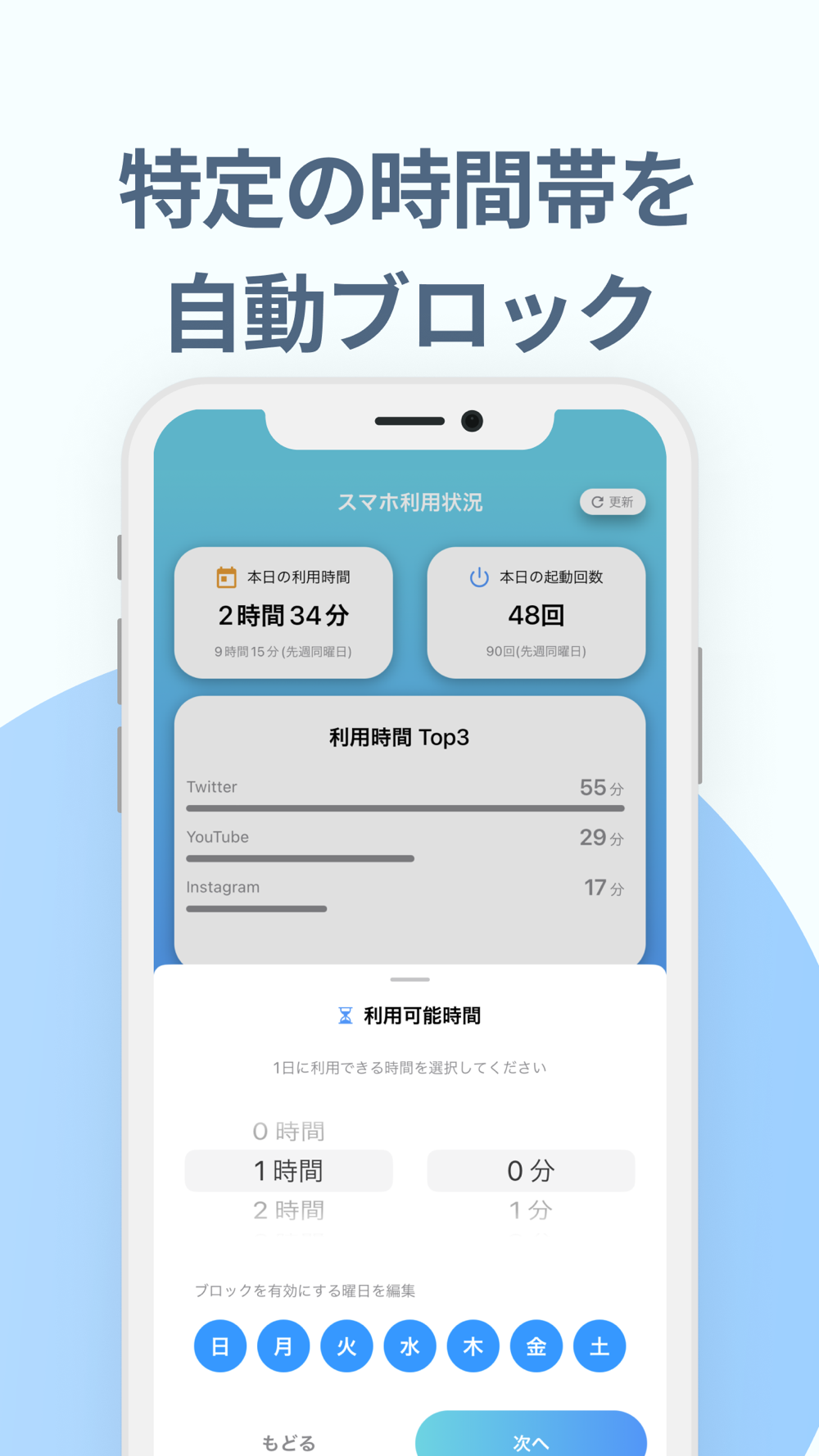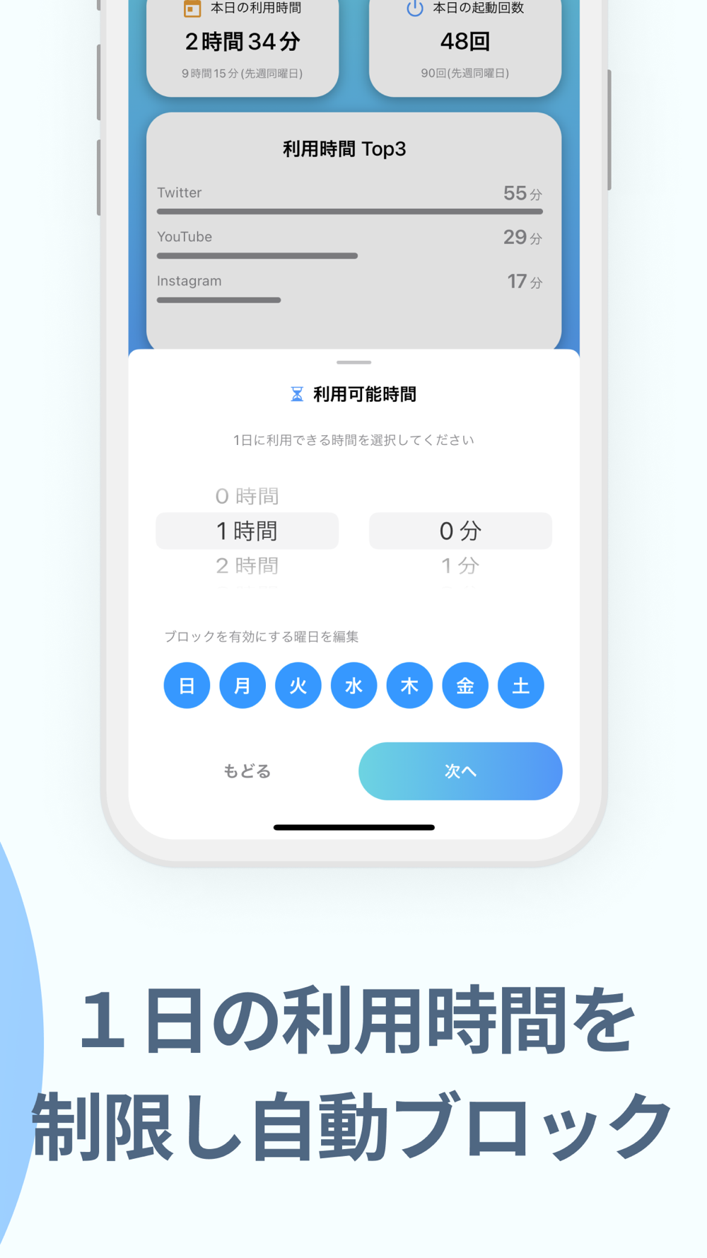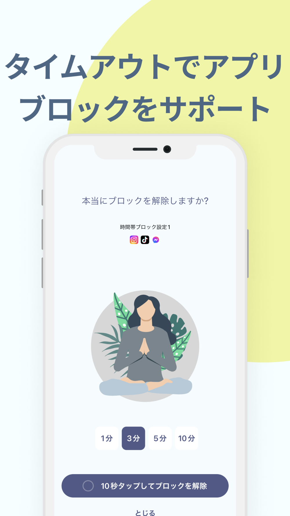 制限時に時間の重要性を訴求することで、簡単にブロックが解除されることを防ぎます。