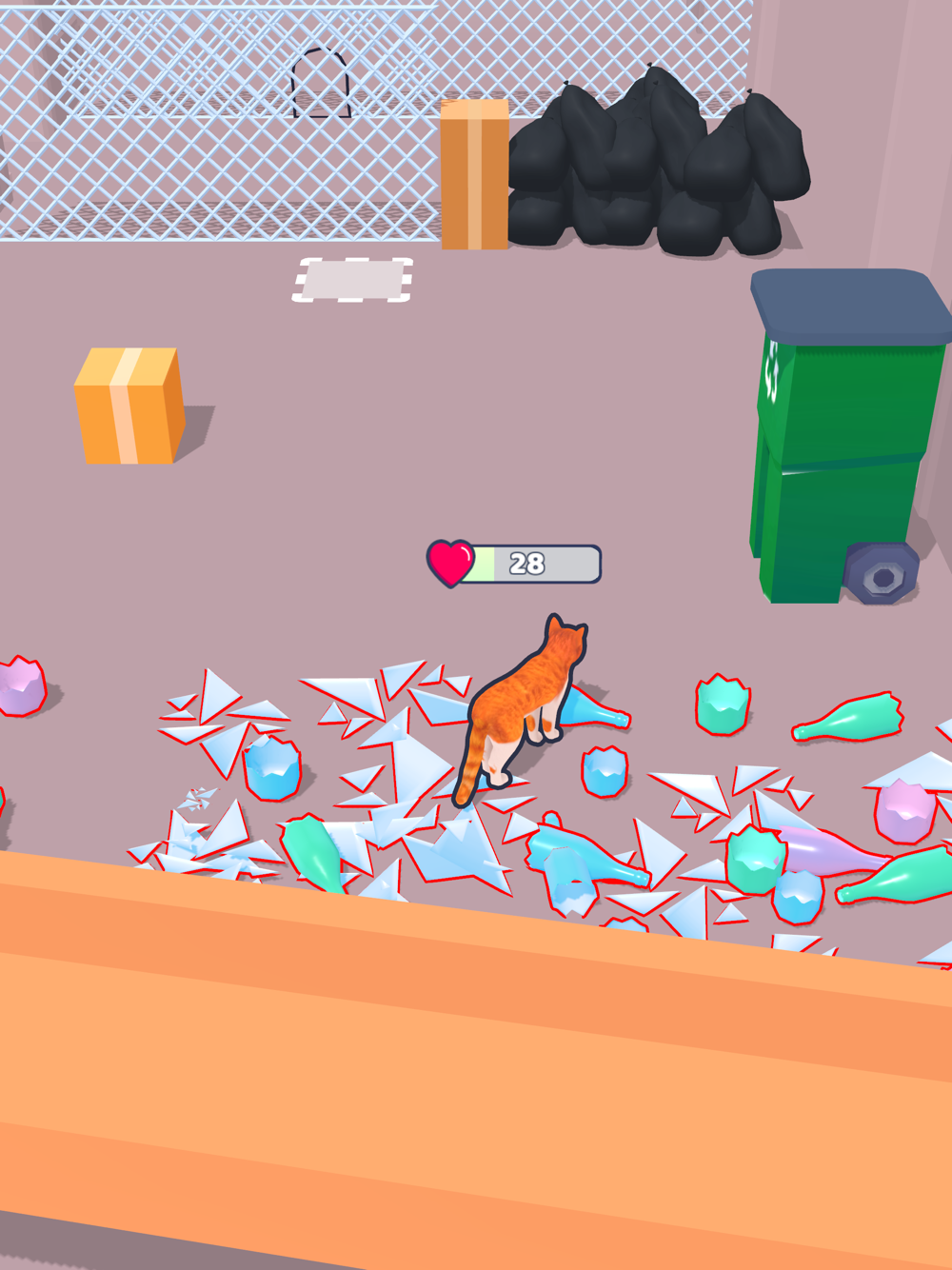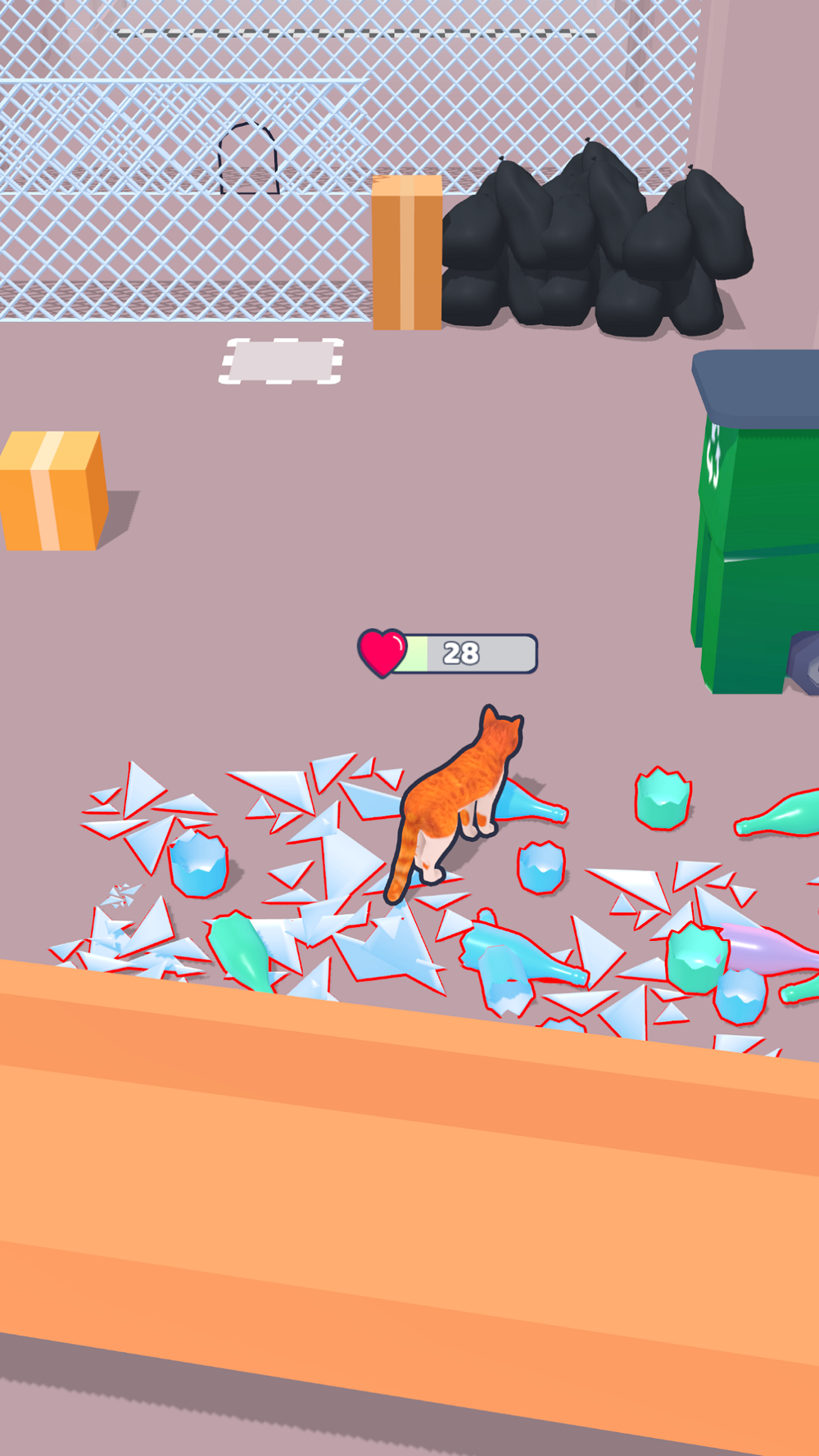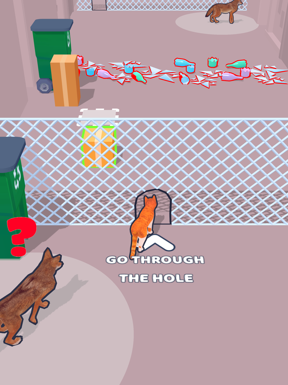 Use cardboards, trashcans & more objects to make your way through the alleys.