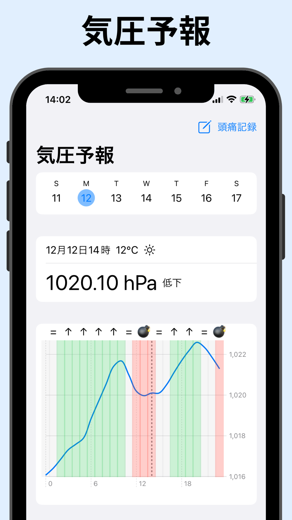 記録すればするほど自分の体調と気圧の傾向がわかります。