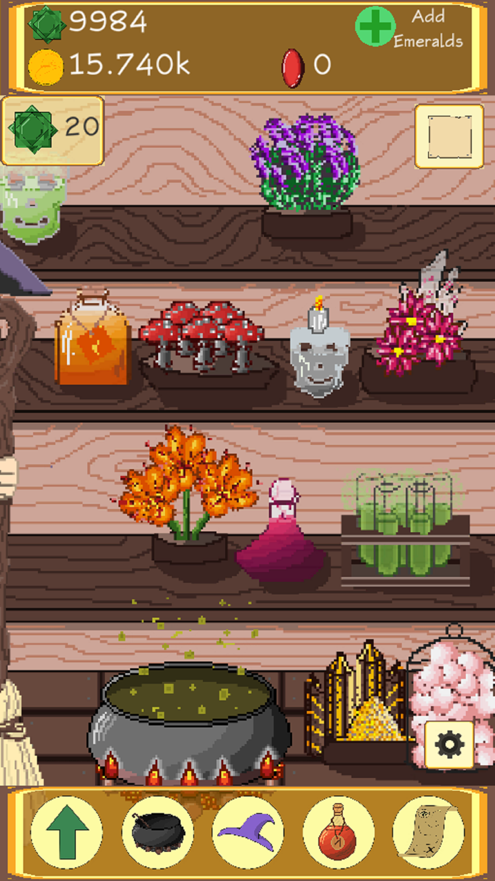 Set up Shop with the local witch to sell a variety of herbs and brews. Gather ingredients across a detailed map to brew powerful and exotic potions. This Idle game has many ways to upgrade and advance your store to sell even better products.