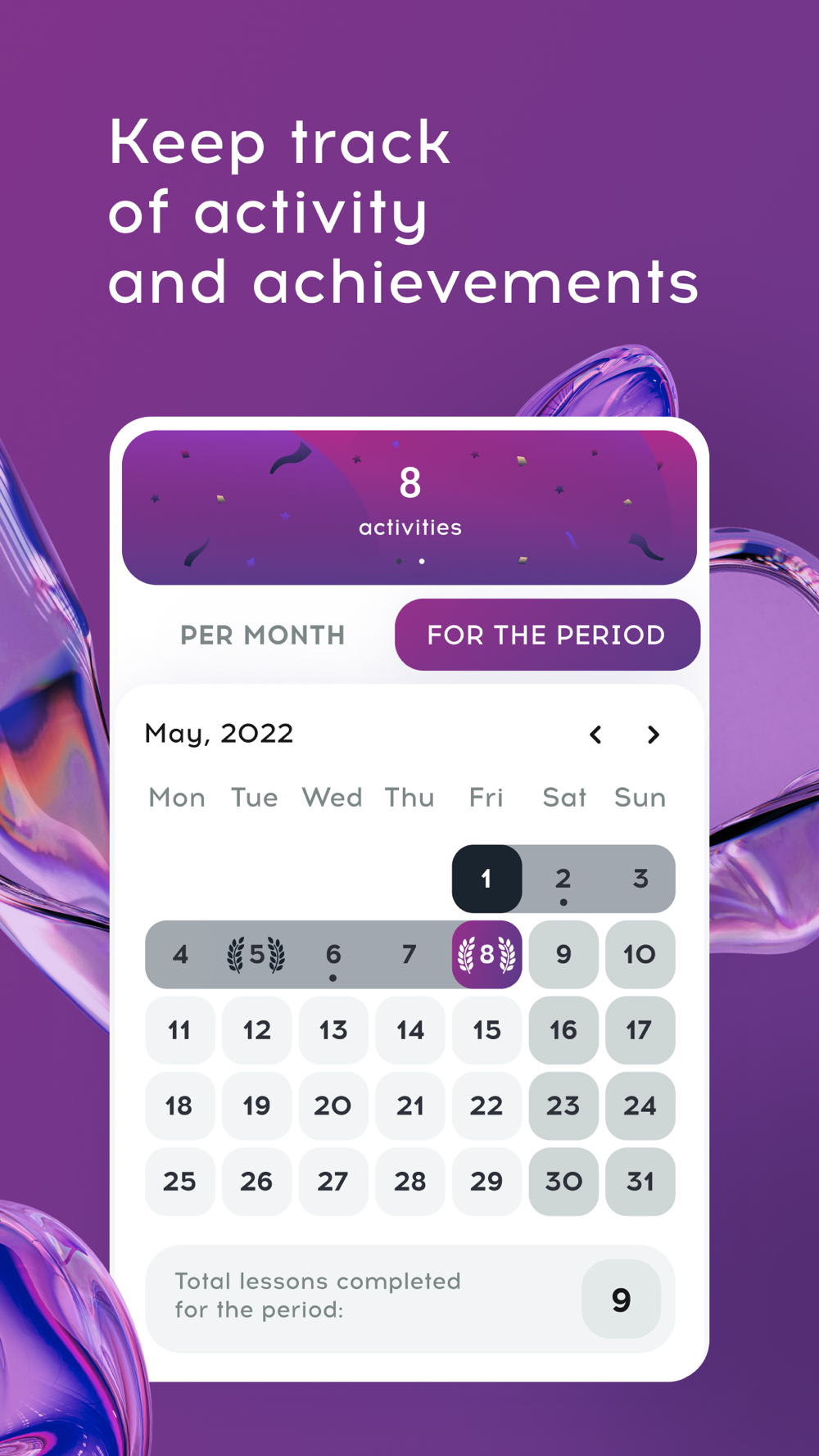 — Keep an activity calendar to stay motivated and complete all available courses.