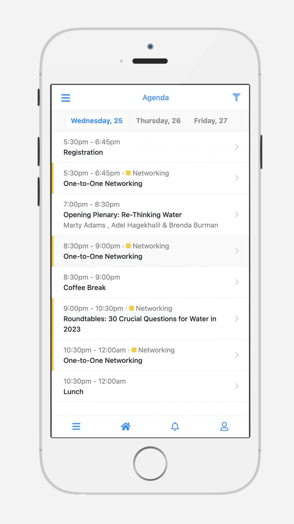 The American Water Summit app will allow you to make the most out of your event experience. Here you will be able to access the agenda, information about the attending speakers and sponsors, and be able to set up one-to-one meetings with other attendees.