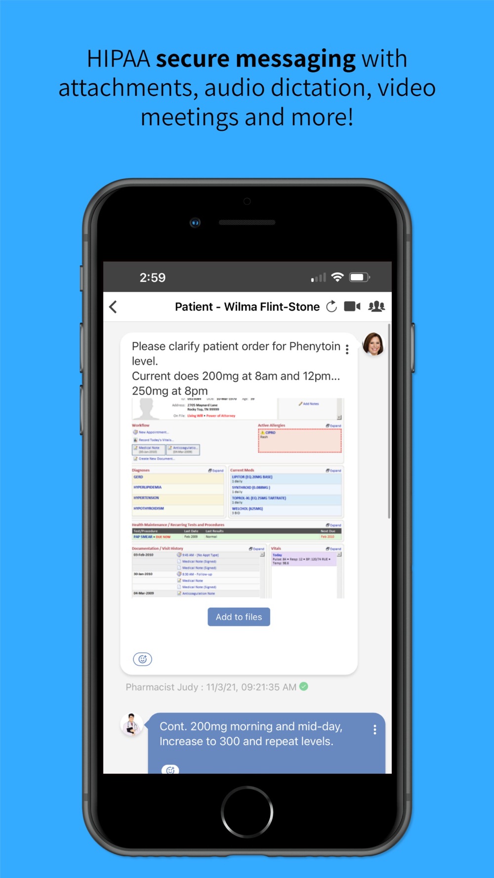 MedWiz is a secure, HIPAA compliant messaging system. Just like text messaging, it allows you to securely communicate with other physicians and healthcare professionals.