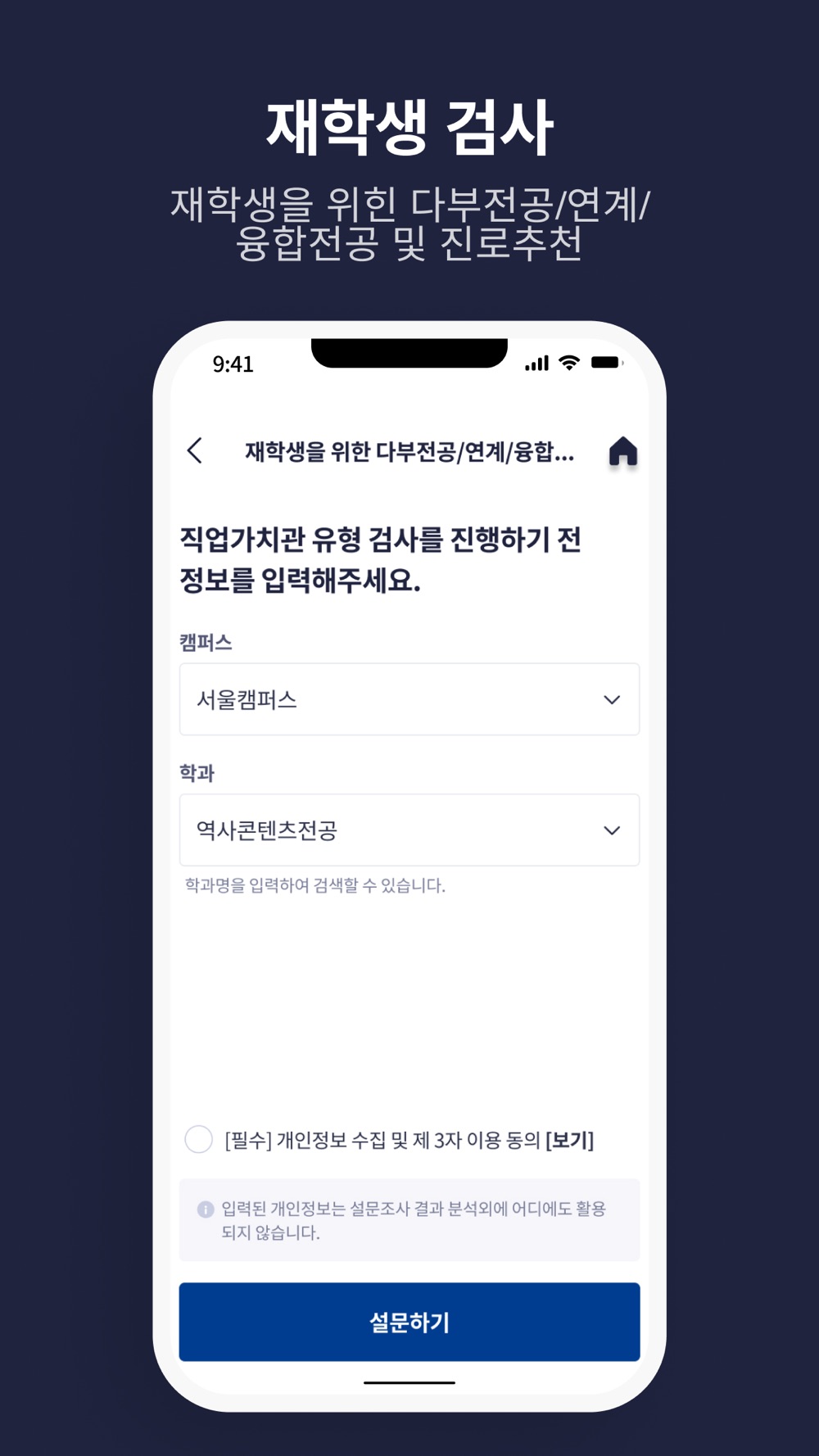 상명대학교 재학생 및 예비 신입생을 위한 진로 추천 프로그램입니다.