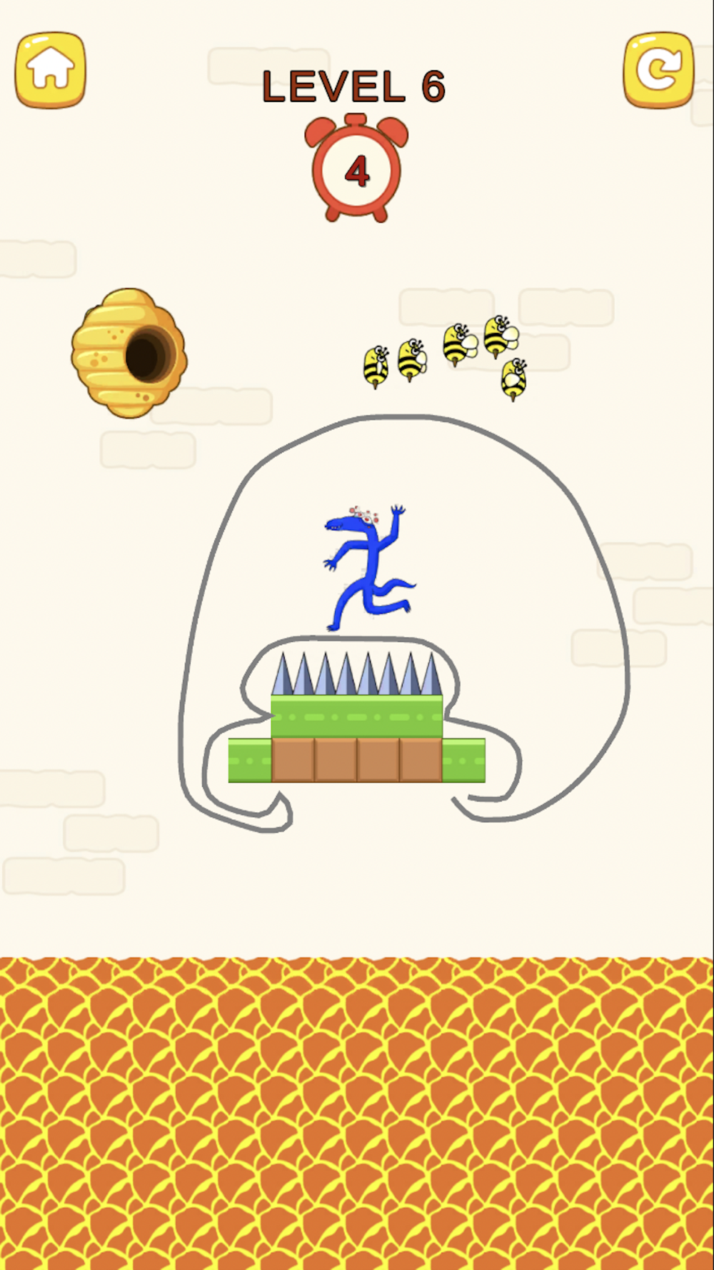 Save My Blue Friends Monster is a casual puzzle game. You draw lines with your fingers to create walls that protect the Blue Friends Monster from attacks by bees in the hive. You need to protect the Blue Friends Monster with the painted wall during the attack of the bees, hold on and you will win the game. Use your brain to Save My Blue Friends Monster.