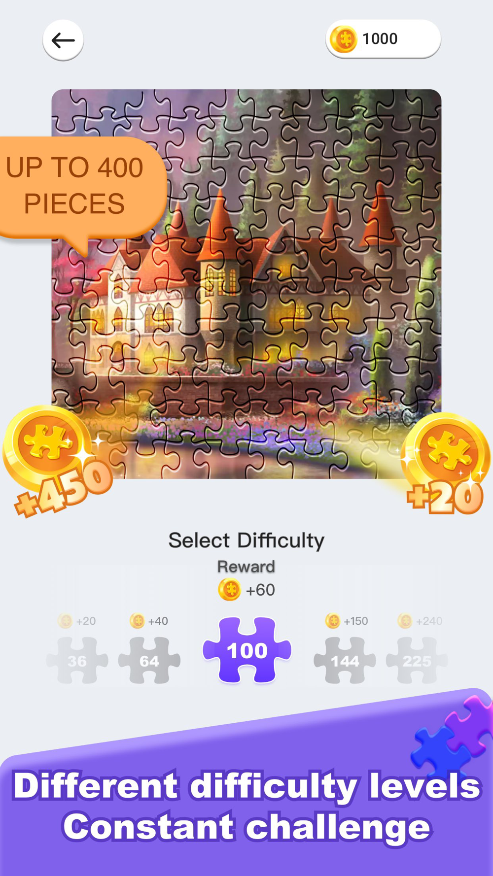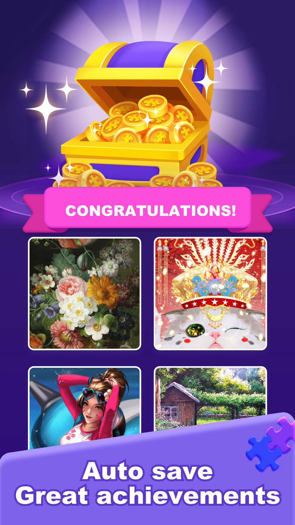 ● Rewards: Complete puzzles to get coins and receive more advanced puzzles.