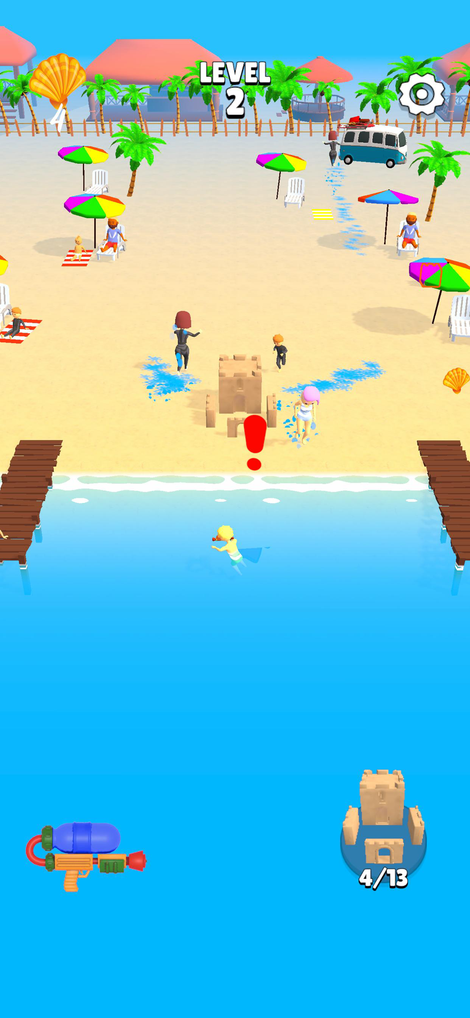 The people who wants to destroy your castle will increase when you level up. You can defend your castle much better by improving your gun. You can build your castle in another beaches and places.
