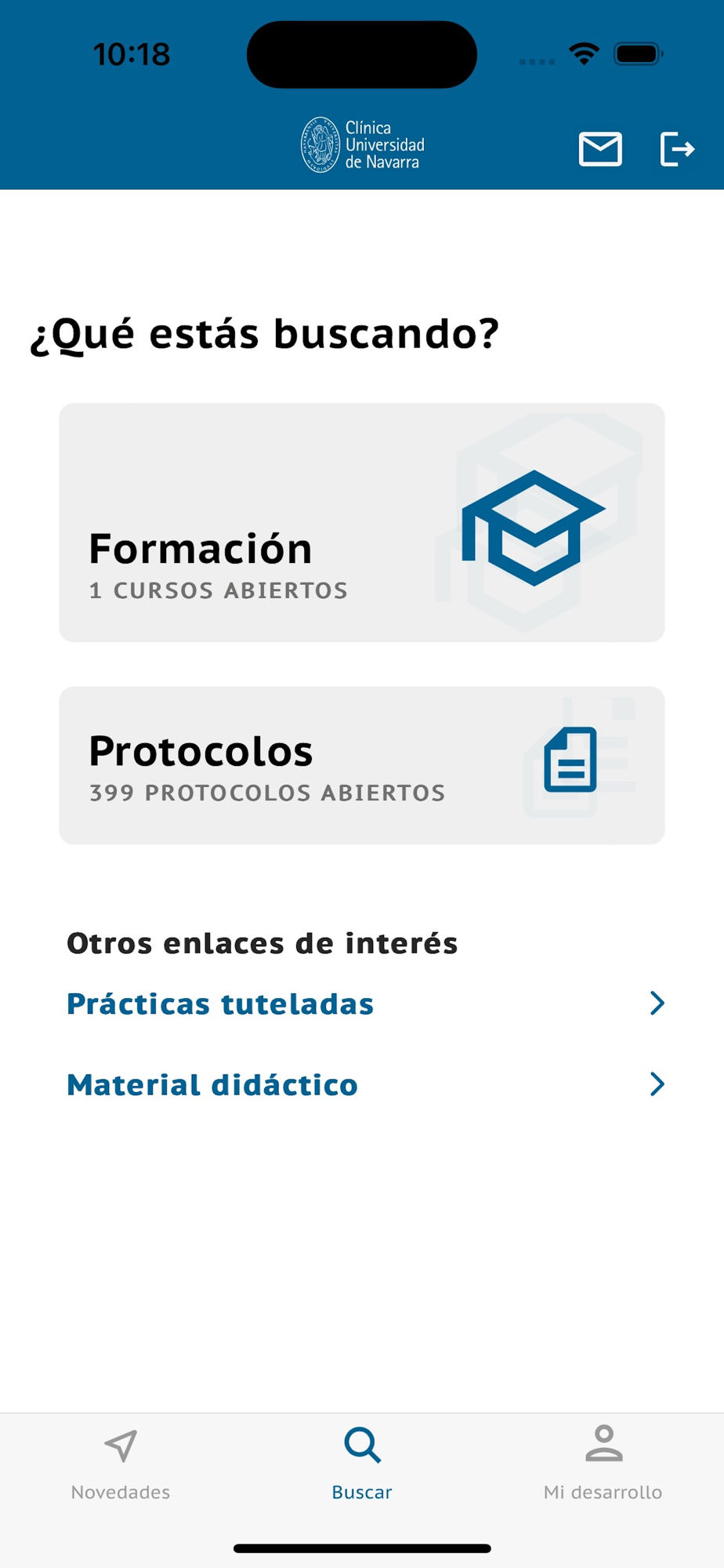 Aplicación para el desarrollo profesional de la CUN (Clínica Universitaria de Navarra).
