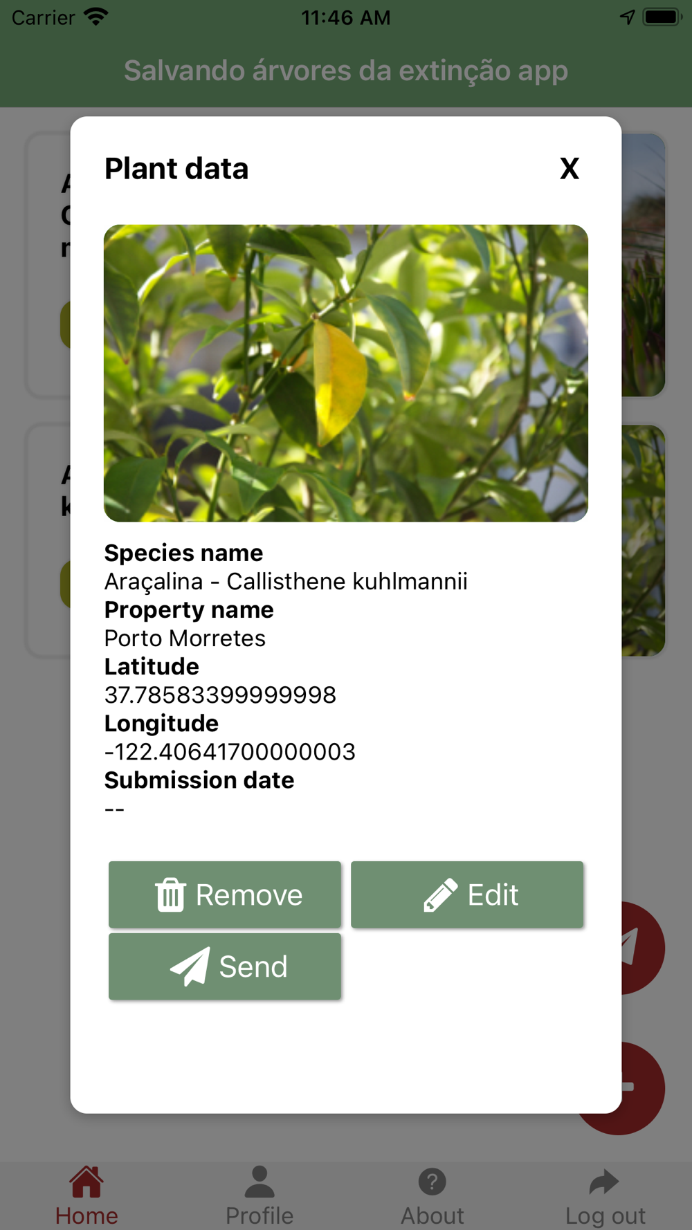 With this app you're able to send data from the seedlings you planted to keep track of them in the future.
