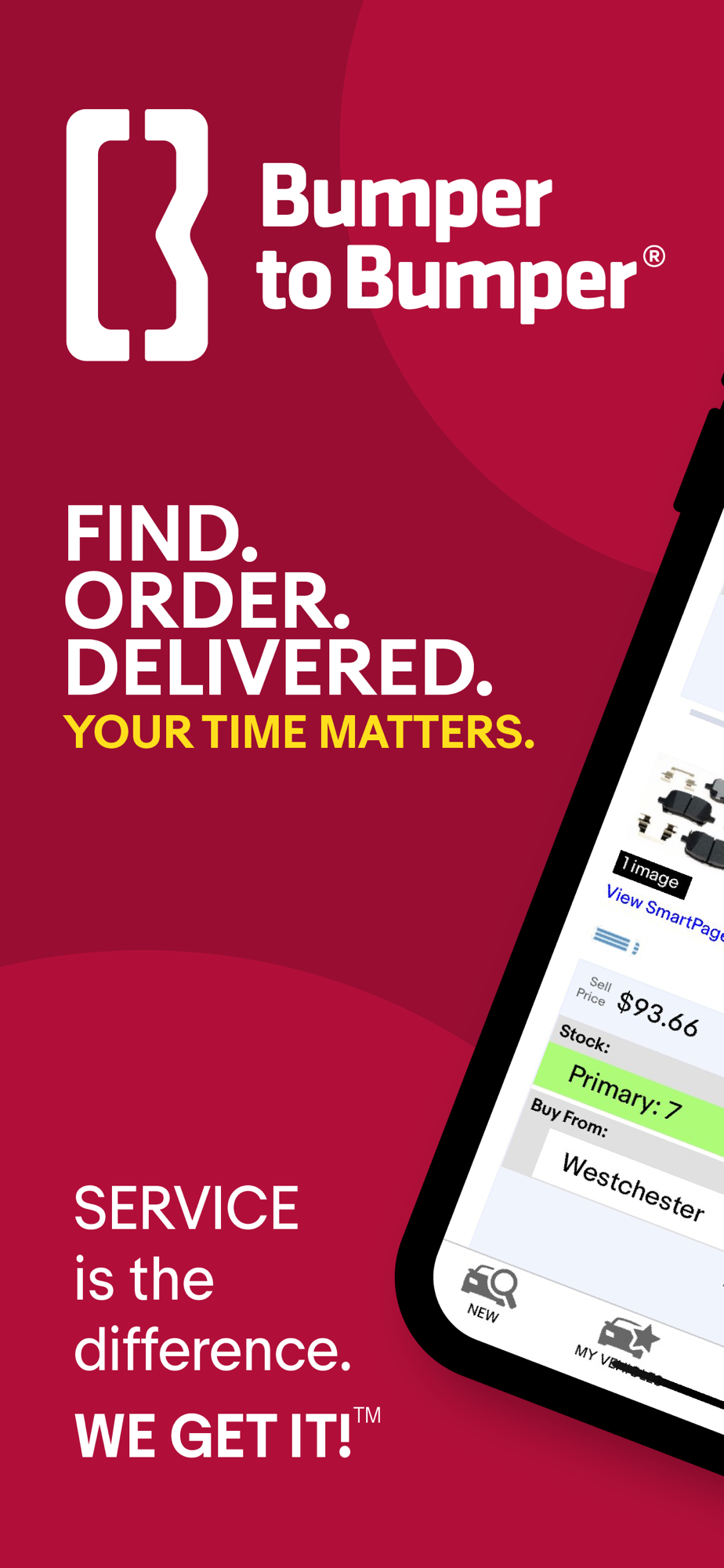 Bumper to Bumper mobile is an easy and secure way to place your parts orders directly from your mobile phone, no matter where you are. The application allows you to search for your parts and display the prices as well as the real-time availability of these according to their number or by type of vehicle with the year, make and model. The easy navigation between different parts suppliers, the ability to scan the VIN with your phone, the synchronization of the solution between the mobile and your PC and the possibility of placing orders directly to one or more sites within a same seller are also features of the mobile app that make your purchases much easier.