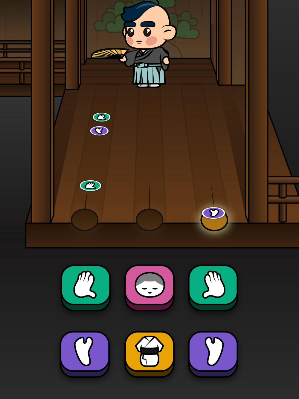 上方丸が戻ってきました!今回は上方丸が能の舞をはじめ、その歴史や表現方法など、幅広く学びます。まず、能舞台の掃除や衣装の片付けなど、さまざまな雑用をこなして能役者のつとめを覚えましょう。基礎を覚えたら、舞のお稽古をつけてもらえるようになります。習った舞を公演で発表し、良い評価をもらえると、新しい謡本・扇子・能面・装束をゲットできます。さぁ、一人前の能役者になりましょう。