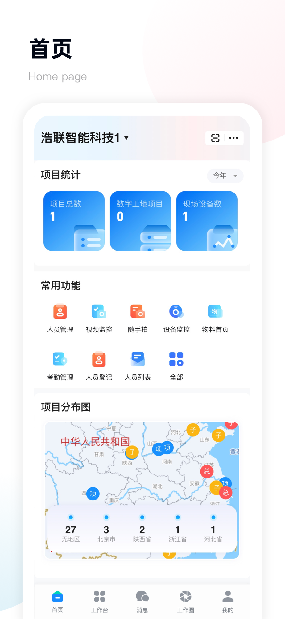 企业级劳务实名制管理、现场机械管理、现场物料管理、质量安全管理等工地智能化软件