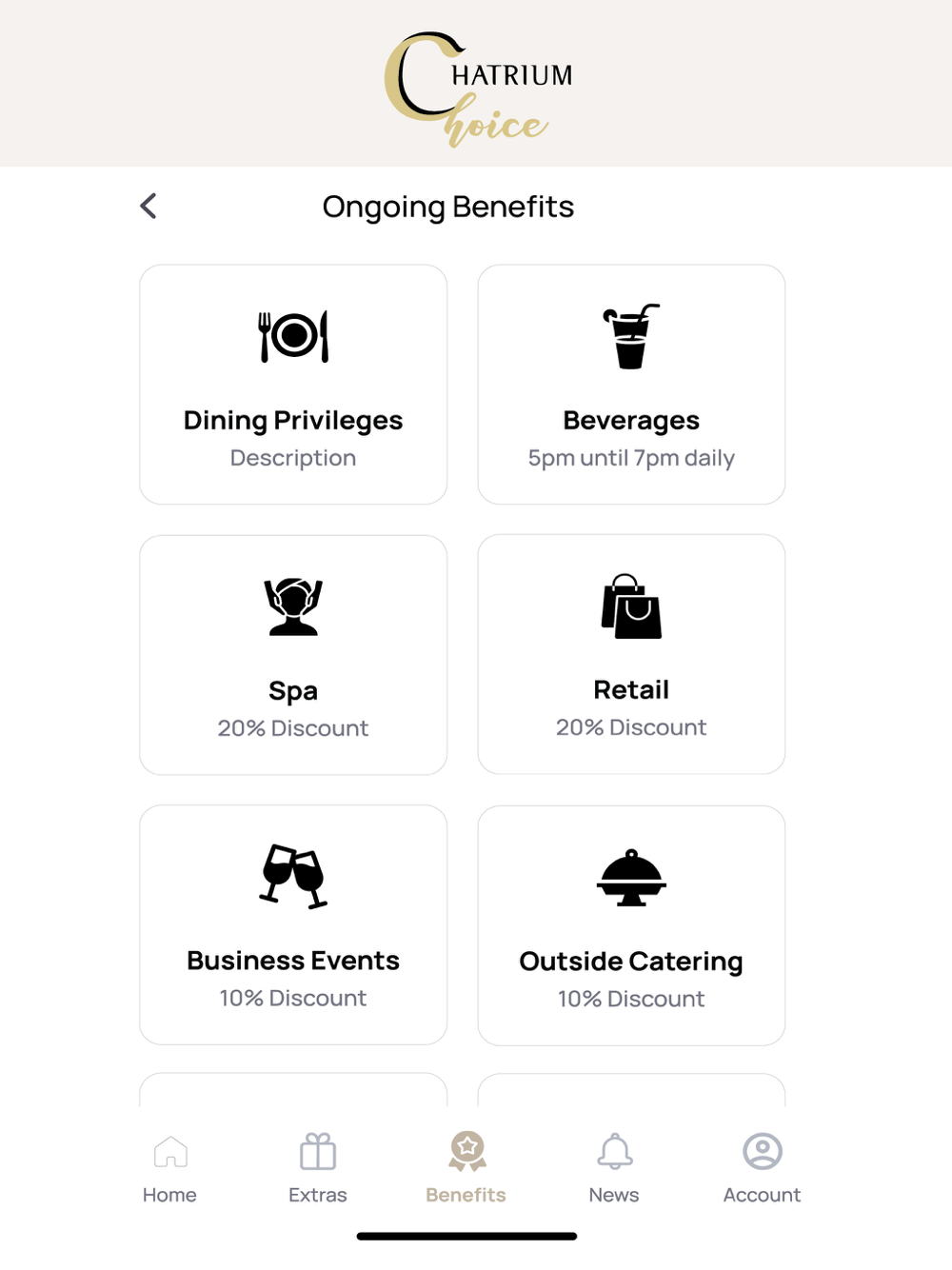 Via the App members access ongoing benefits as well as e-certificates, bonus awards and notifications of exclusive offers.