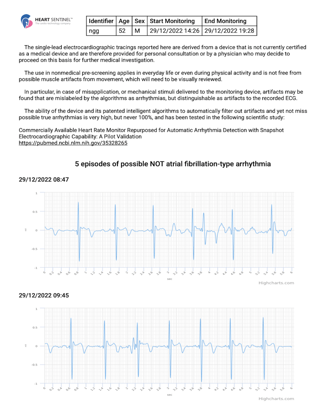 DISCLAIMER: Pre-screening and ECG information coming from Ritmia is derived from a device that is not currently certified as a medical device and is therefore provided for personal consultation. Users should seek a doctor’s advice in addition to using this app and before making any medical decisions. A physician may be willing to proceed with further medical investigation.