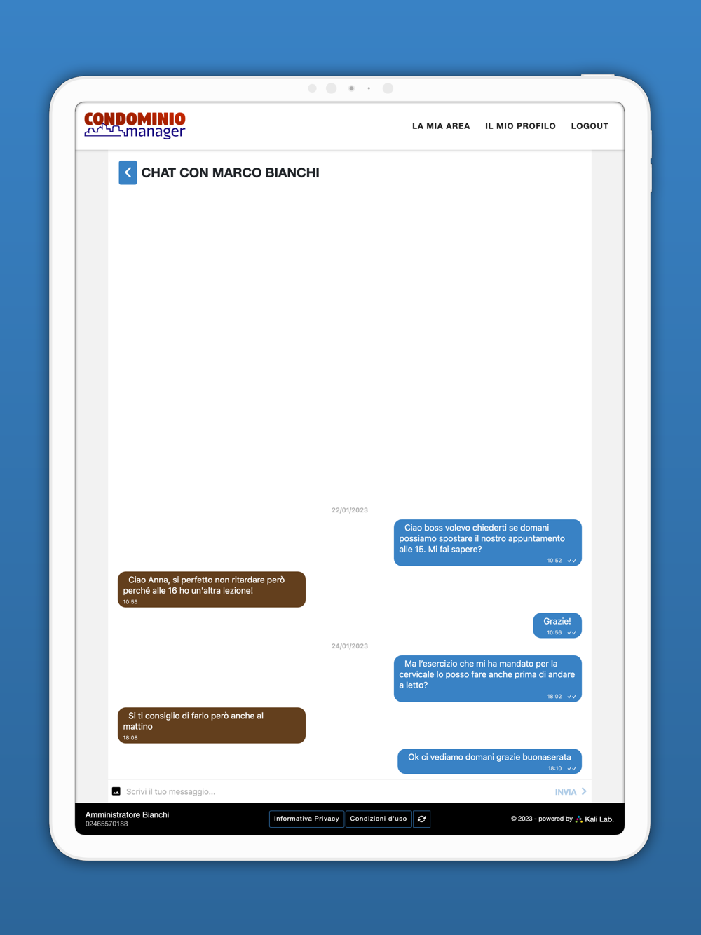 . chatta con l'amministratore se hai bisogno di informazioni o per segnalare un problema;