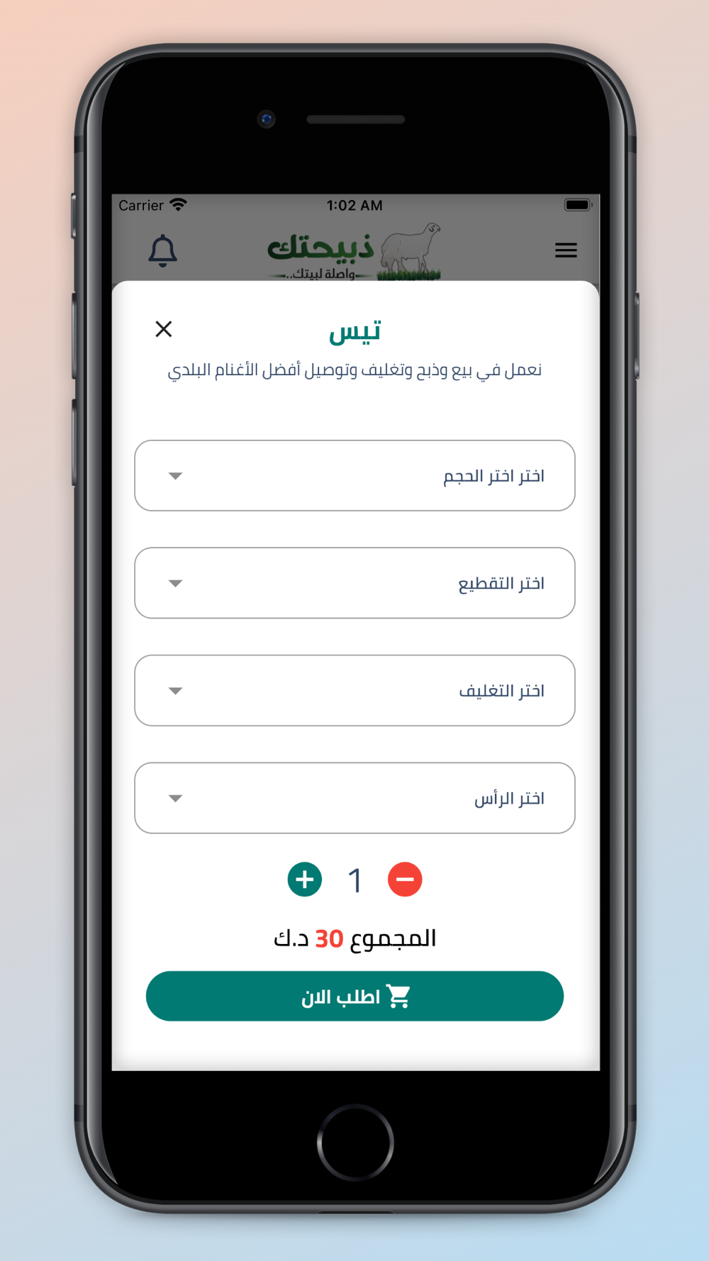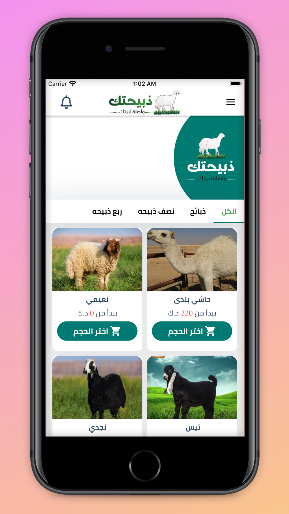 ١. اختر ما تريد من طلبات تهمك من ذبائح ومنتجات تطبيق ذبيحتك