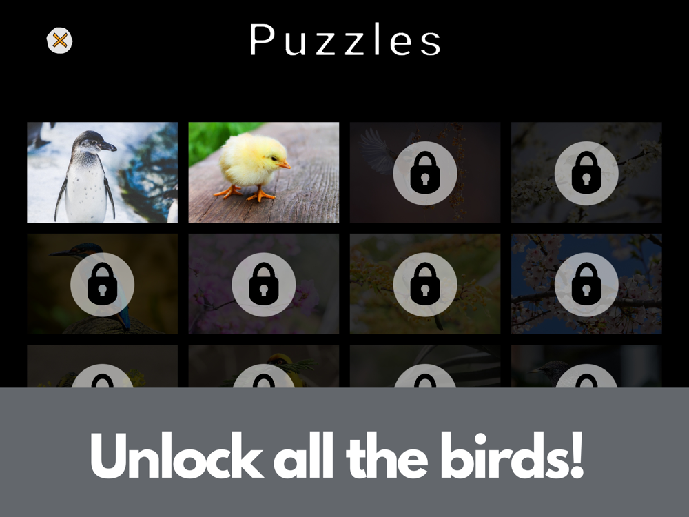 4x7 Puzzle board where you drag and swap tiles between each other until you get a correct picture of a bird. Collect birds and enjoy how beautiful they are. Calming guitar music in background helps you forget every day problems. Take a cup of tea and solve a puzzle to see a lovely bird.