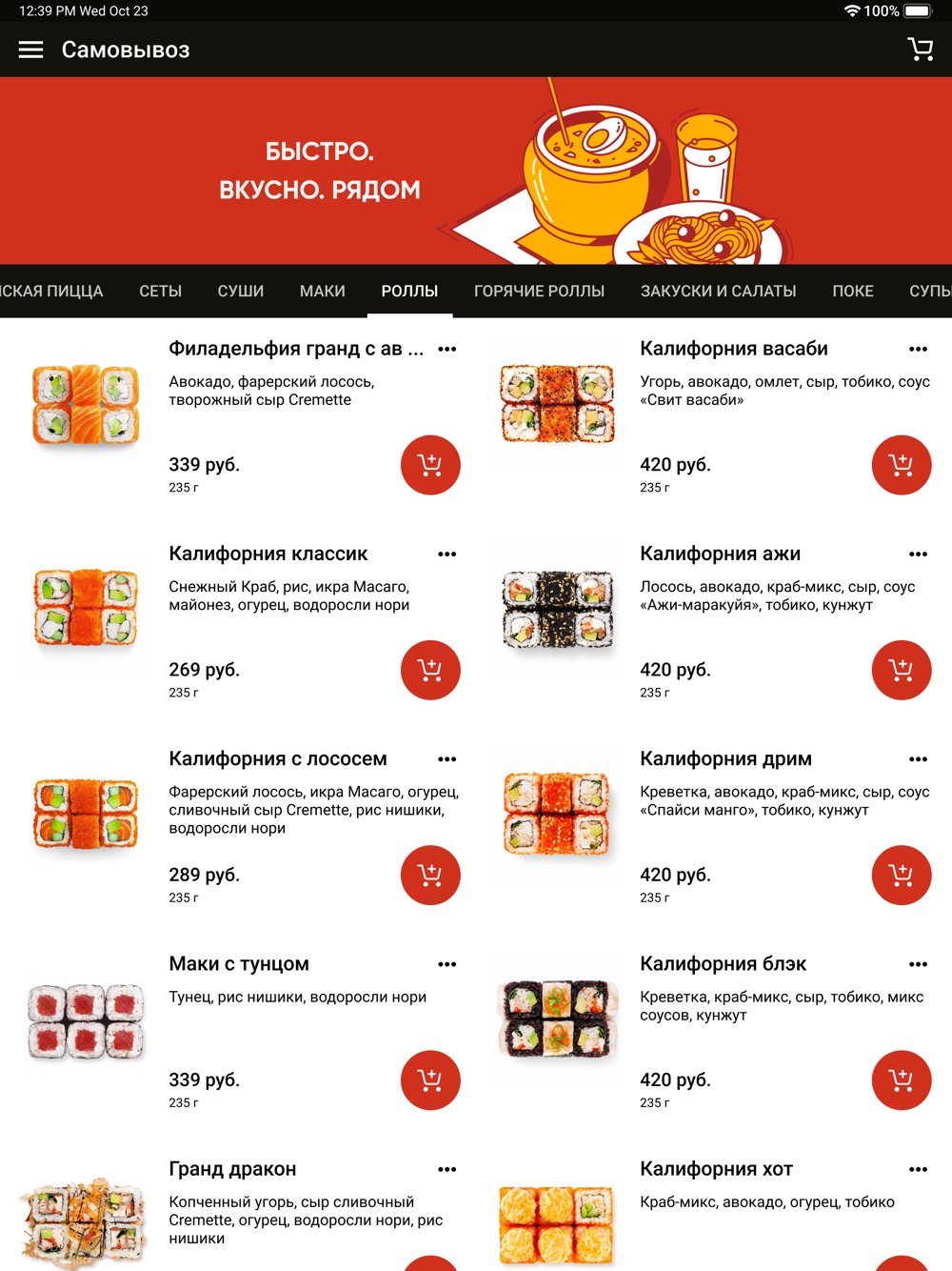 - большой выбор роллов, из которых можно создать свой собственный разнообразный сет