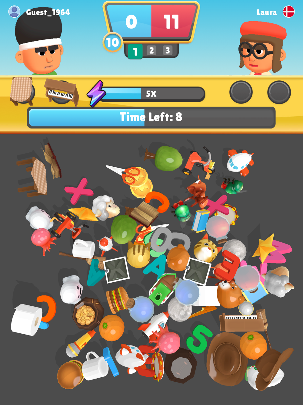 Introduce the ultimate multiplayer match-3 game, featuring 3D objects and exciting competition! In our game, you and your opponent each have a set of slots where you can place objects by tapping on them. Your goal is to quickly catch and match objects in your slots to earn points. The player who earns the most points by accurately matching objects wins the game. Download now and challenge your friends to see who has the skills to emerge victorious!