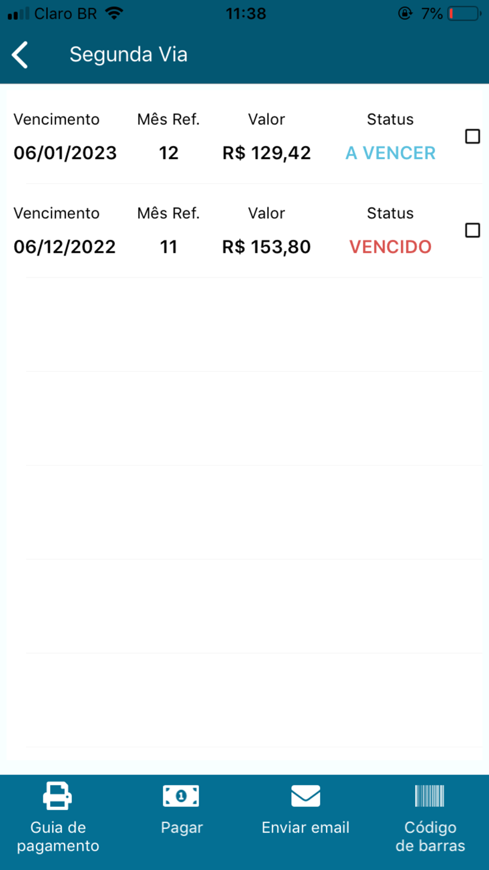 - Segunda via de conta de água e esgoto.