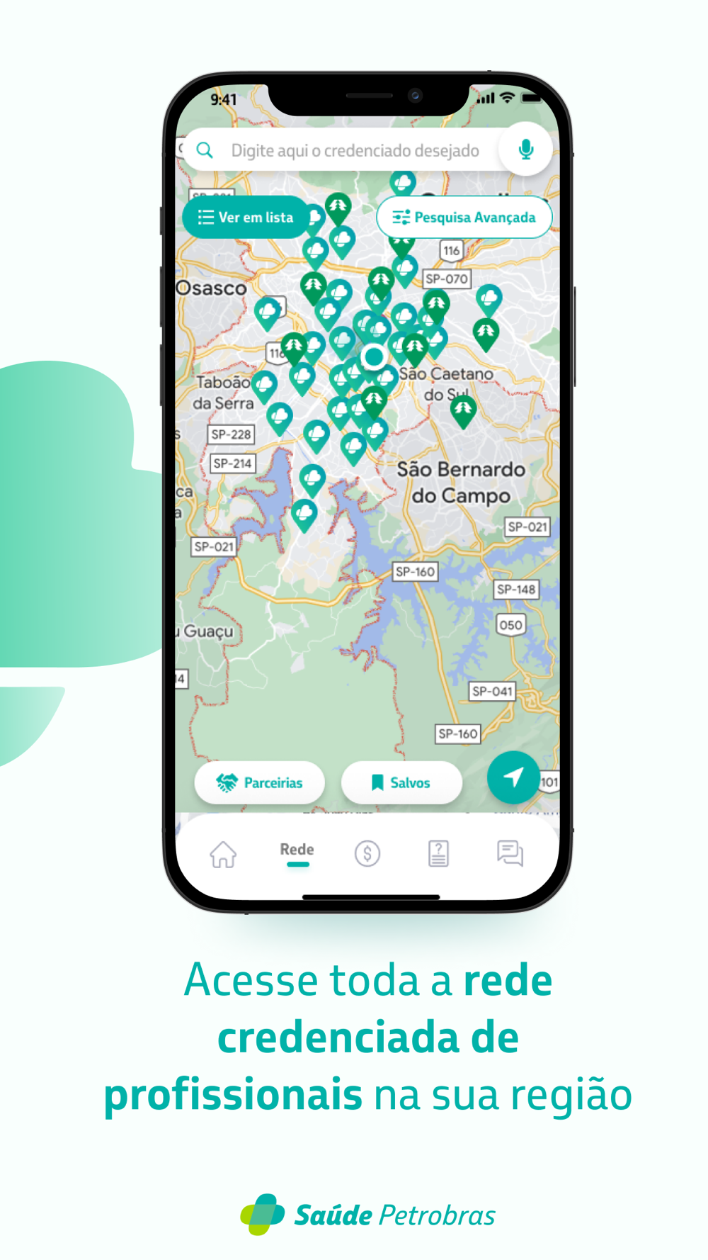 O novo app da Saúde Petrobras! Com ele você terá acesso a todos os principais serviços e funcionalidades disponibilizados pelo seu plano de saúde na palma da sua mão! Verifique a rede credenciada de profissionais em sua região, acompanhe reembolsos e outras solicitações, acesse a sua carteirinha digital com praticidade, e muito mais!