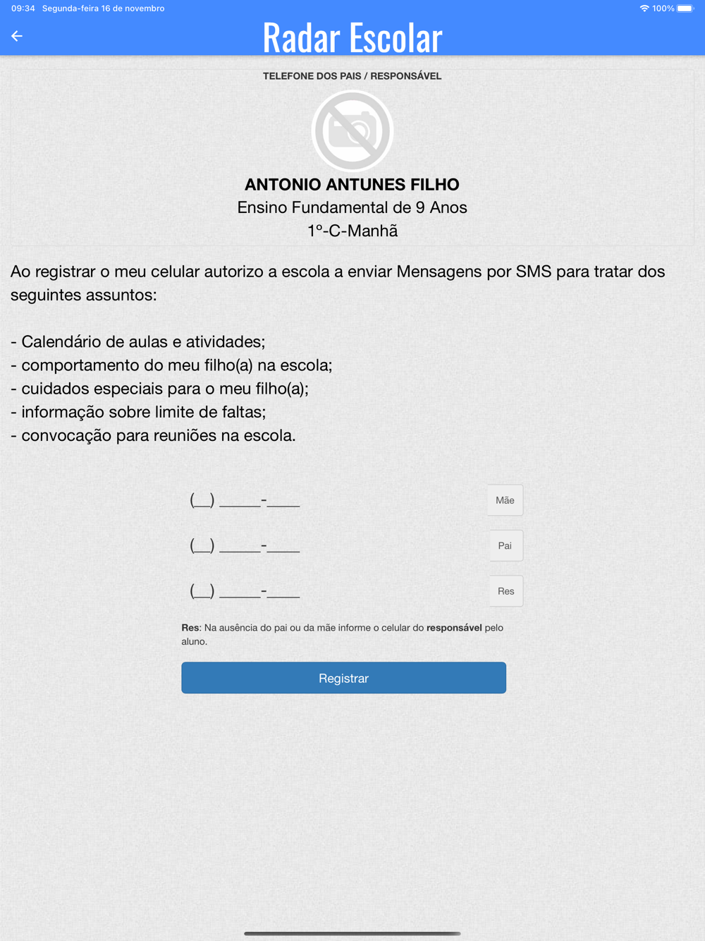 O Radar Escolar possibilita a integração de informações entre a escola e a família através da tecnologia Mobile da ETIBrasil e requer uma conexão internet ativa no aparelho.