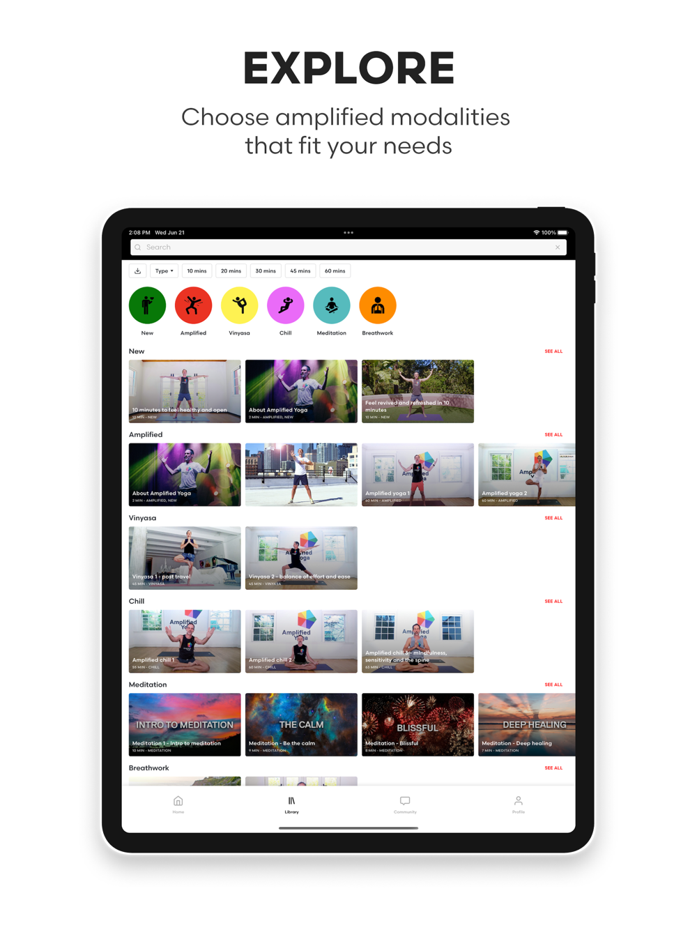 • Access diverse Amplified Yoga classes, including the original Amplified Yoga, dynamic Vinyasa flows, Kundalini practices, breath work, guided meditations, and more.