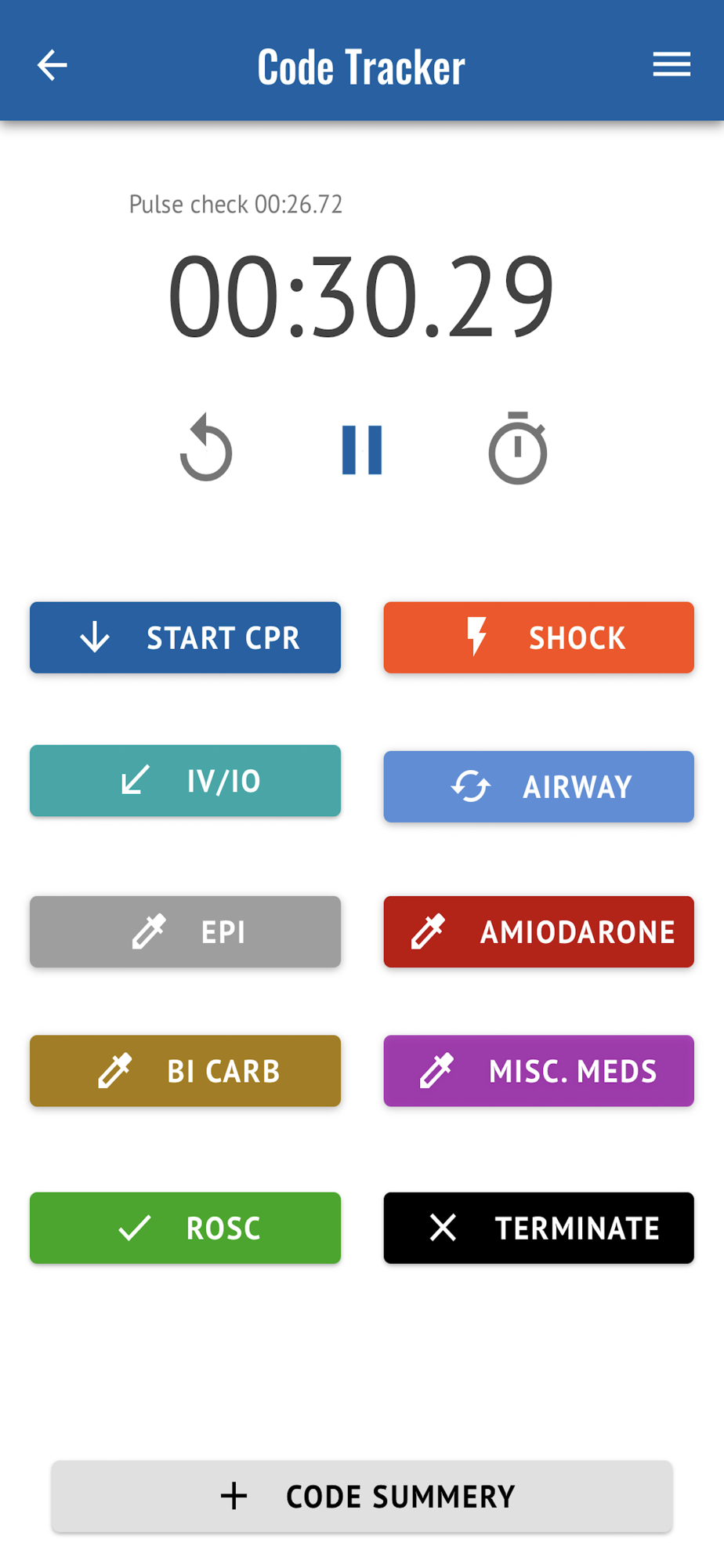 -Real-Time Tracking: Stay on top of every critical procedure with our real-time tracking feature. Code Tracker ensures you never miss a beat, tracking your progress through cardiac arrest protocols and providing live updates as you go.