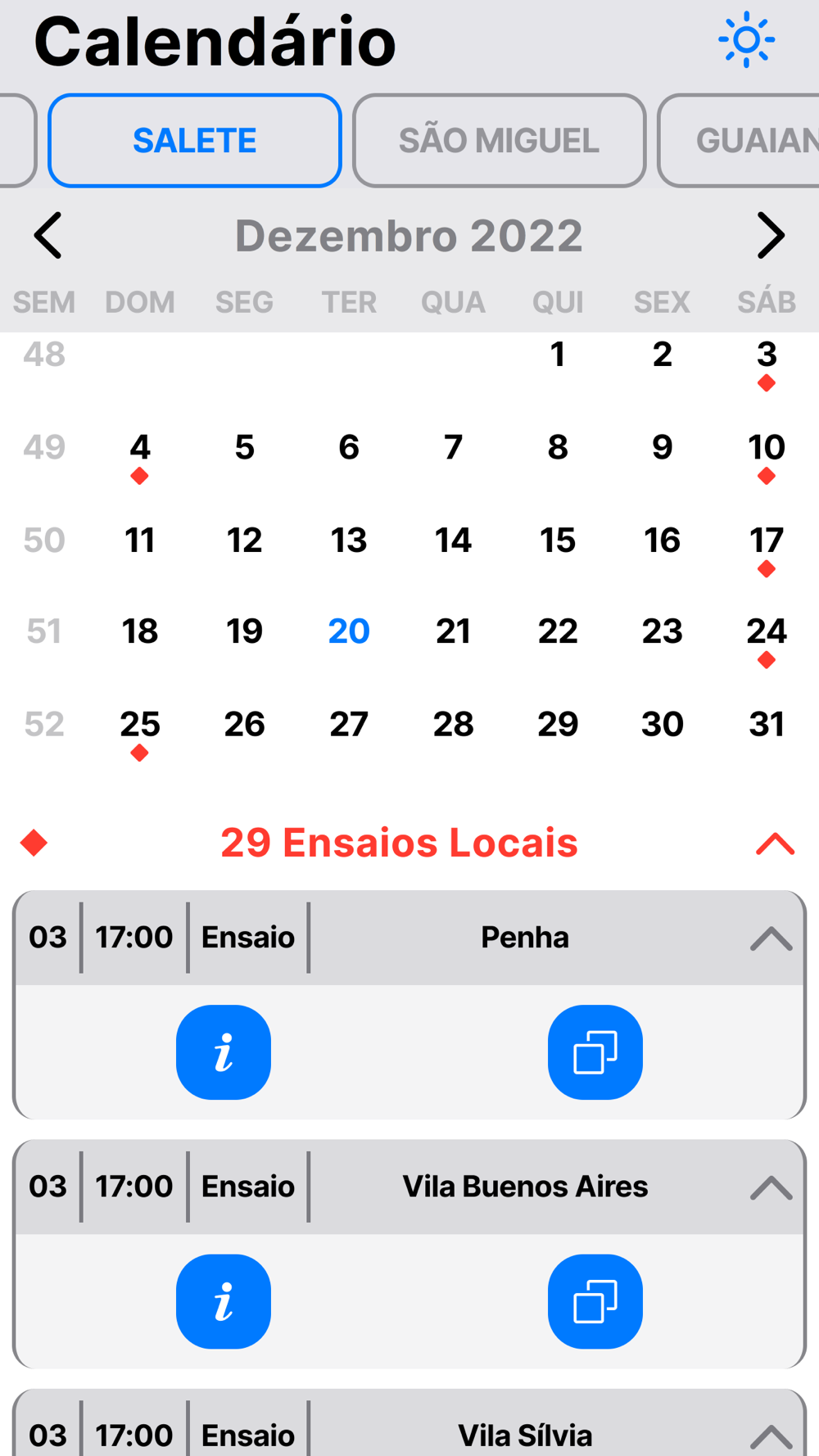 Very useful smartphone application for millions of musicians of world, to know where the musical events of the Christian Congregation in Brazil, Leste Zone of São Paulo, SP, Brazil are being held.