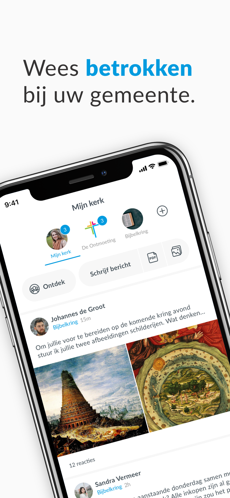 Thanks to our unique group structure, we can communicate better. With the entire community, but also among ourselves. You can add groups yourself and invite people to join. A smart timeline ensures that you see personal and relevant information.