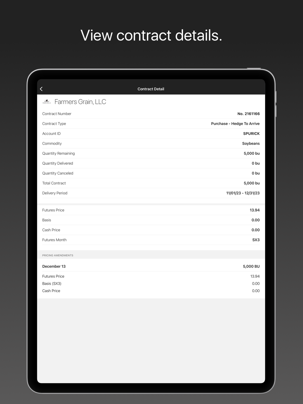 The Farmers Grain LLC app is an essential mobile solution that connects your operation to your grain facility, providing real-time, actionable information to help you manage and grow your business.