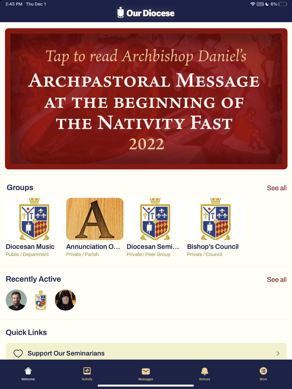 Stay in touch with other churches and members throughout the diocese, join your favorite groups and ministries to coordinate, get notified about events, and more.