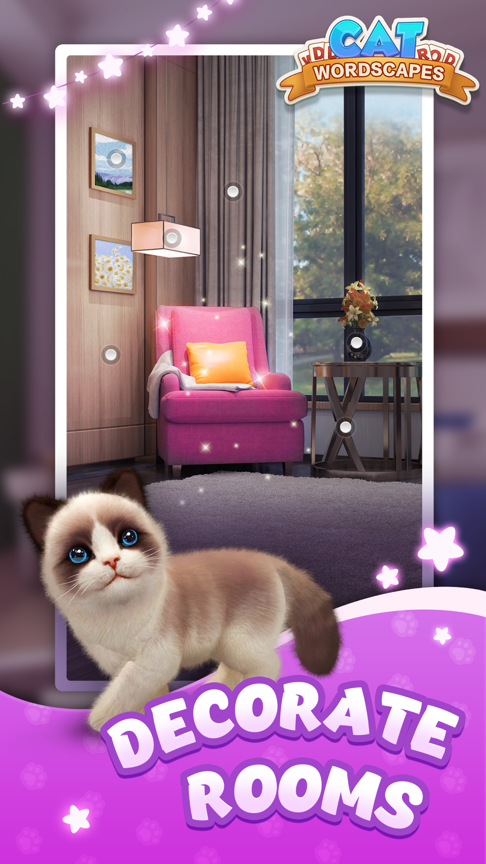 • Decorate rooms: Create a private space for relaxing with your cats, by beating more stages.