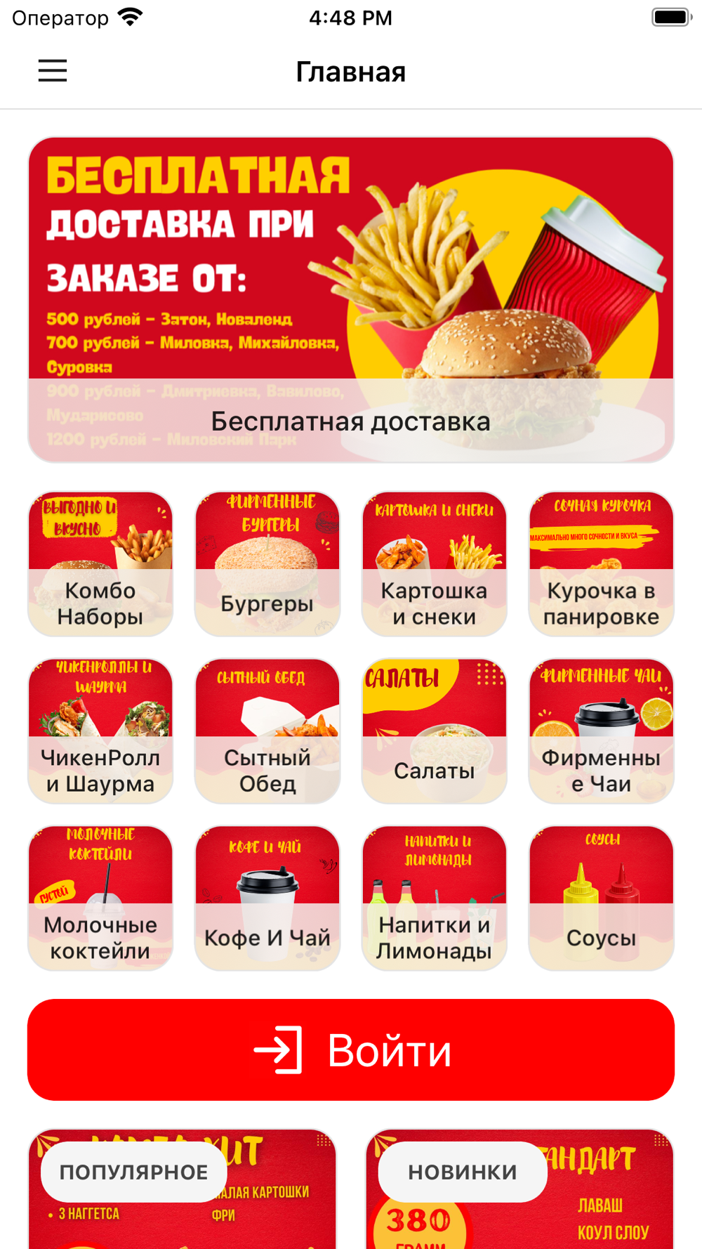 Пройдя быструю и лёгкую регистрацию единожды, вам больше не придётся стоять в очереди. Вы можете сделать заказ к определённому времени и к вашему приходу всё будет готово. Или же просто оформить бесплатную доставку в пределах зоны обслуживания, при наборе заказа на определенную сумму, скидка проставится автоматически.