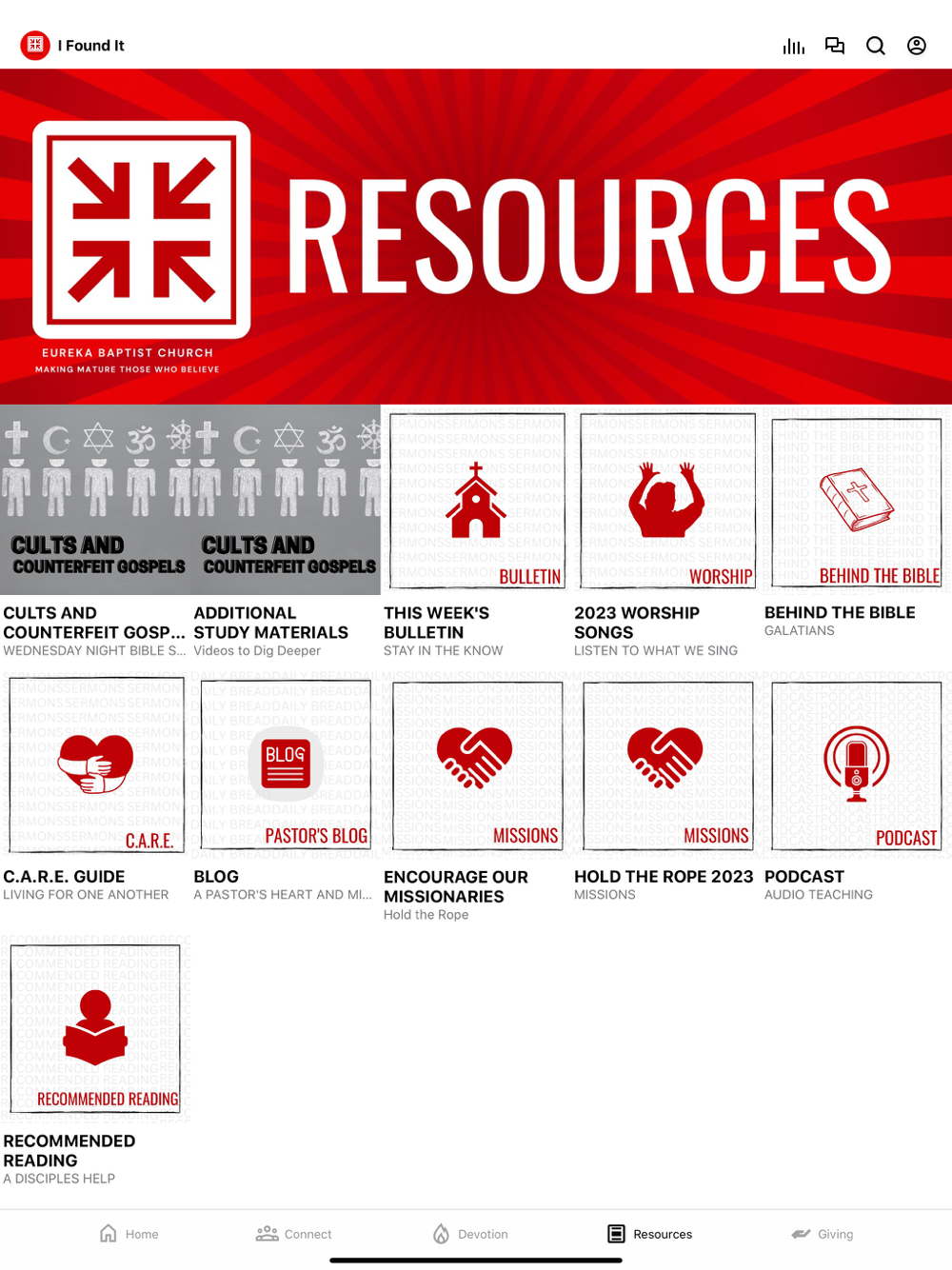 You can connect to a variety of resources, including sermons, music, articles, event information, and more.