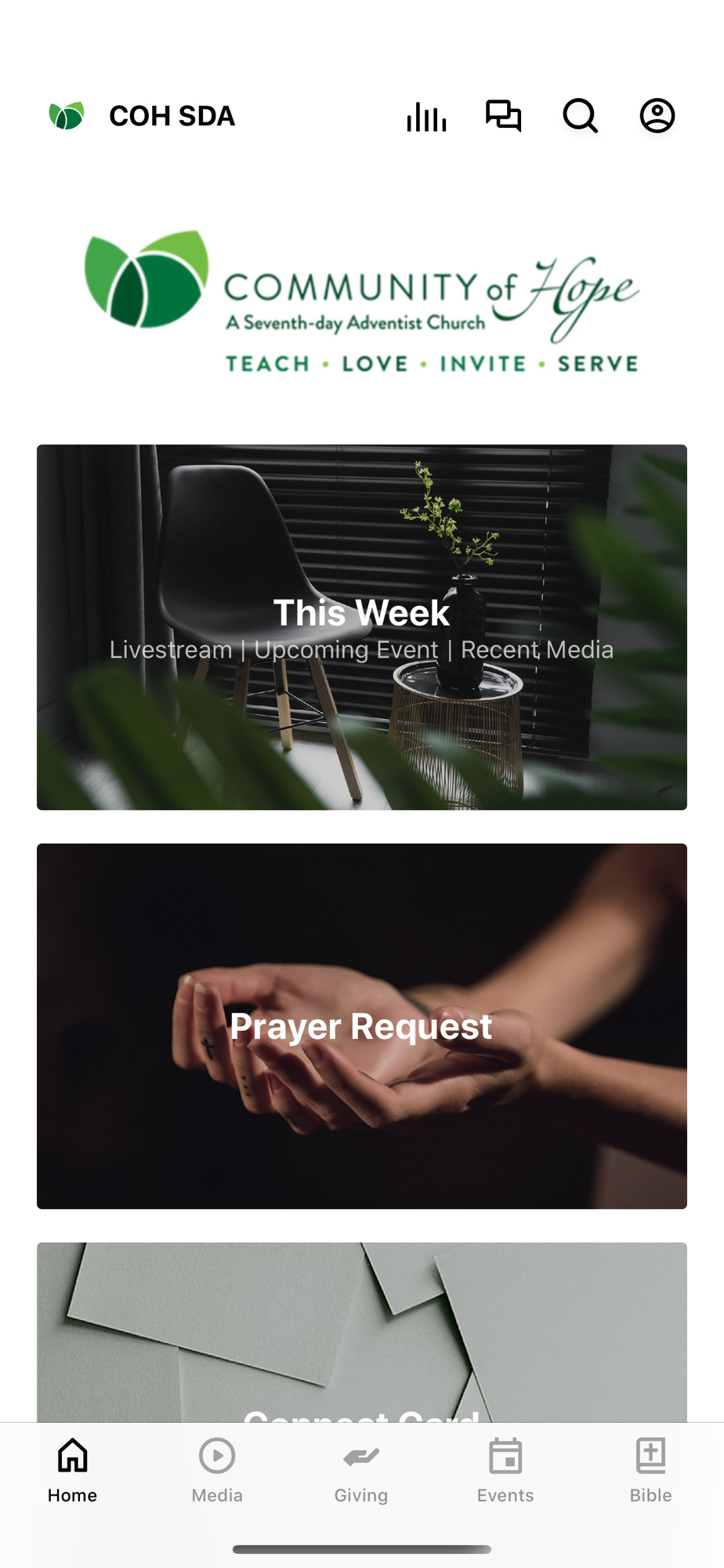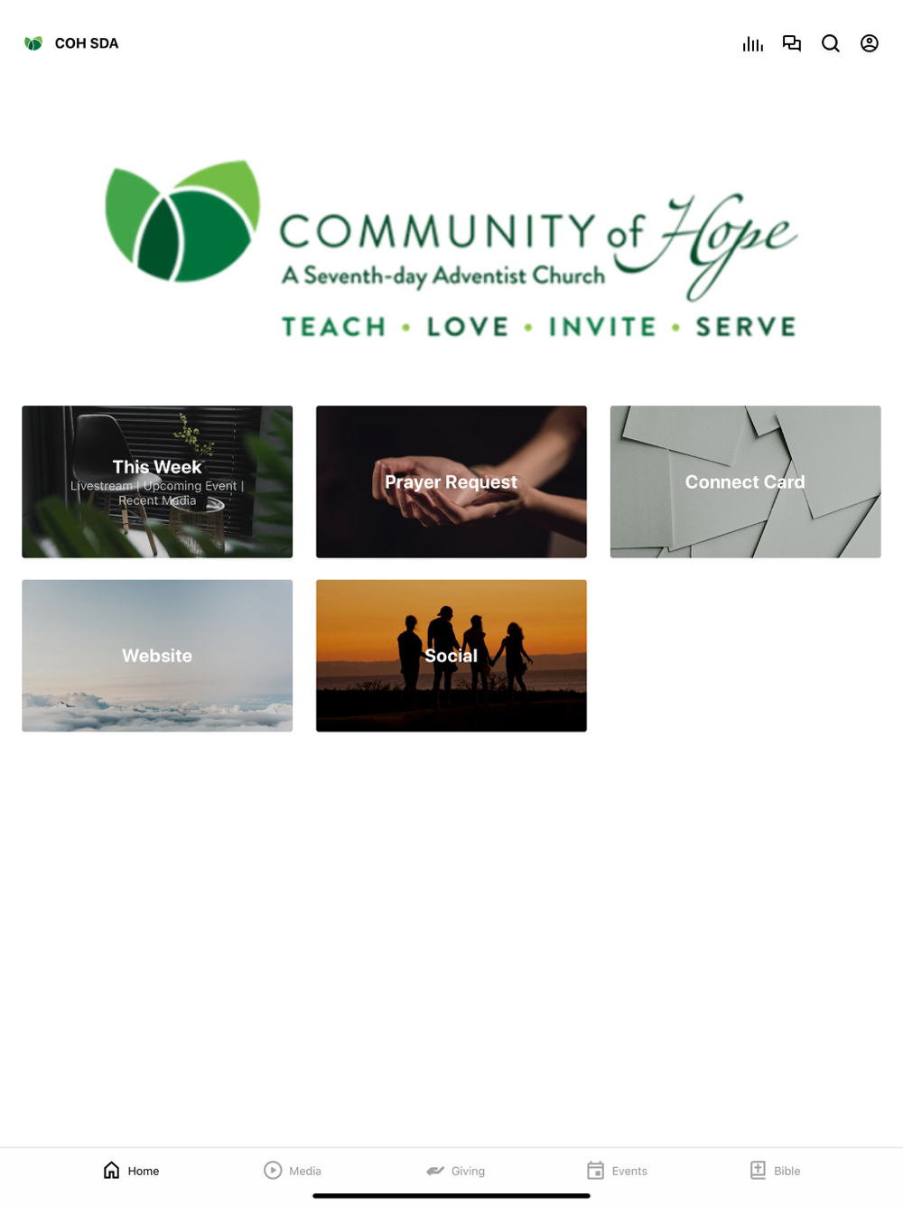 This app will help you stay connected with the day-to-day life of Community of Hope SDA Church. With this app you can: watch or listen to past messages; Donate; stay up to date with push notifications; share your favorite messages via Twitter, Facebook, or email; and download messages for offline listening.