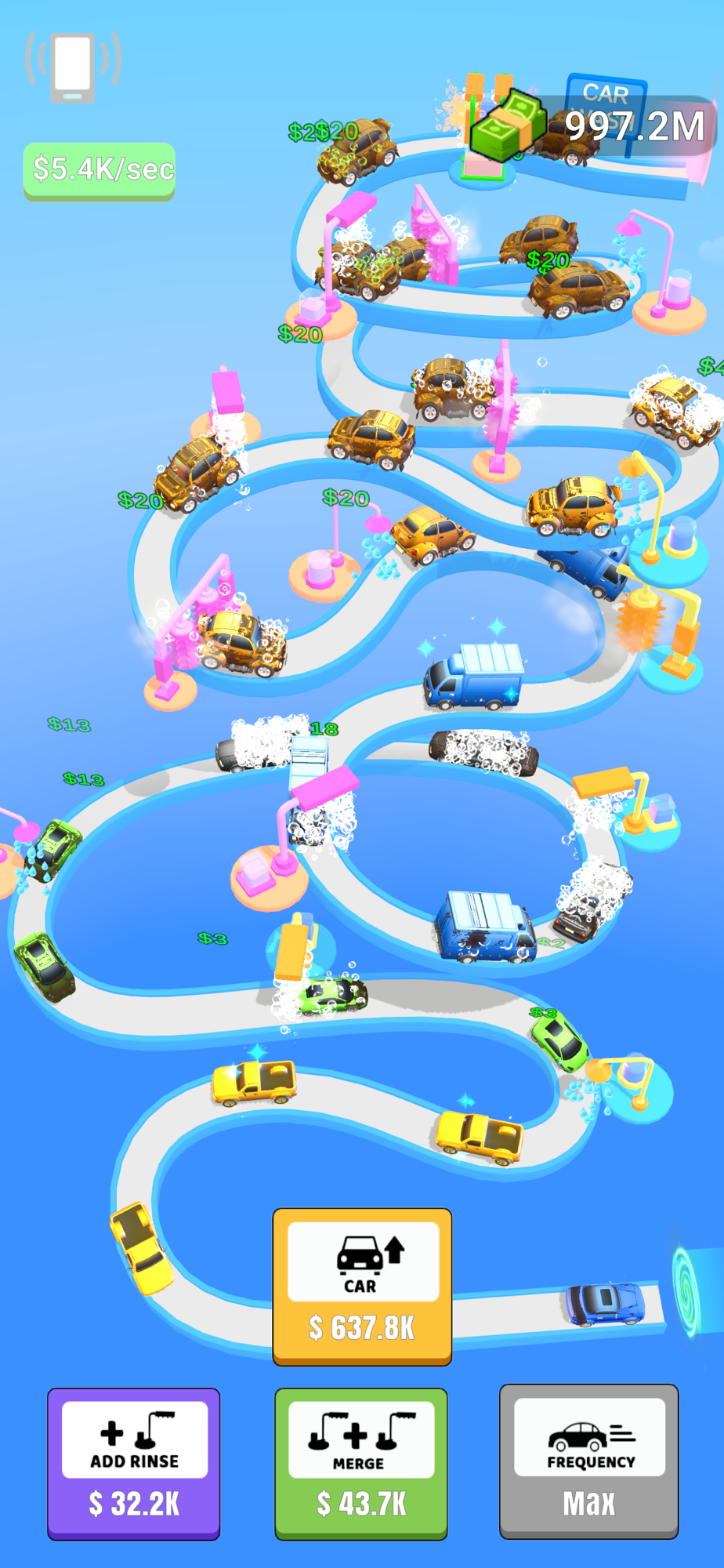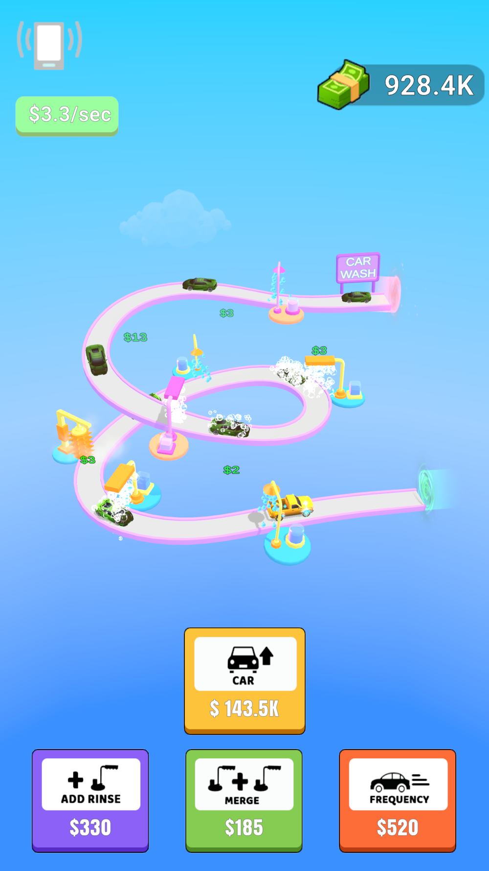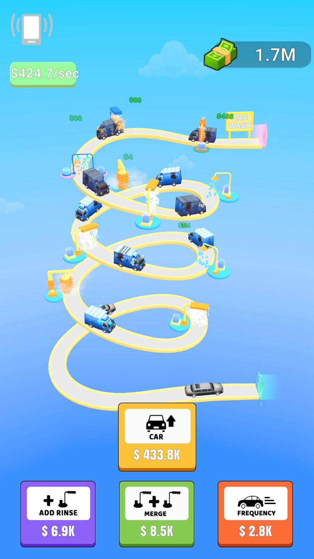 It's road car wash time! Manage and upgrade the car washing device, let these dirty cars passing through the small intestines be cleaned! At the same time, keep clicking on the screen to let the car speed up.