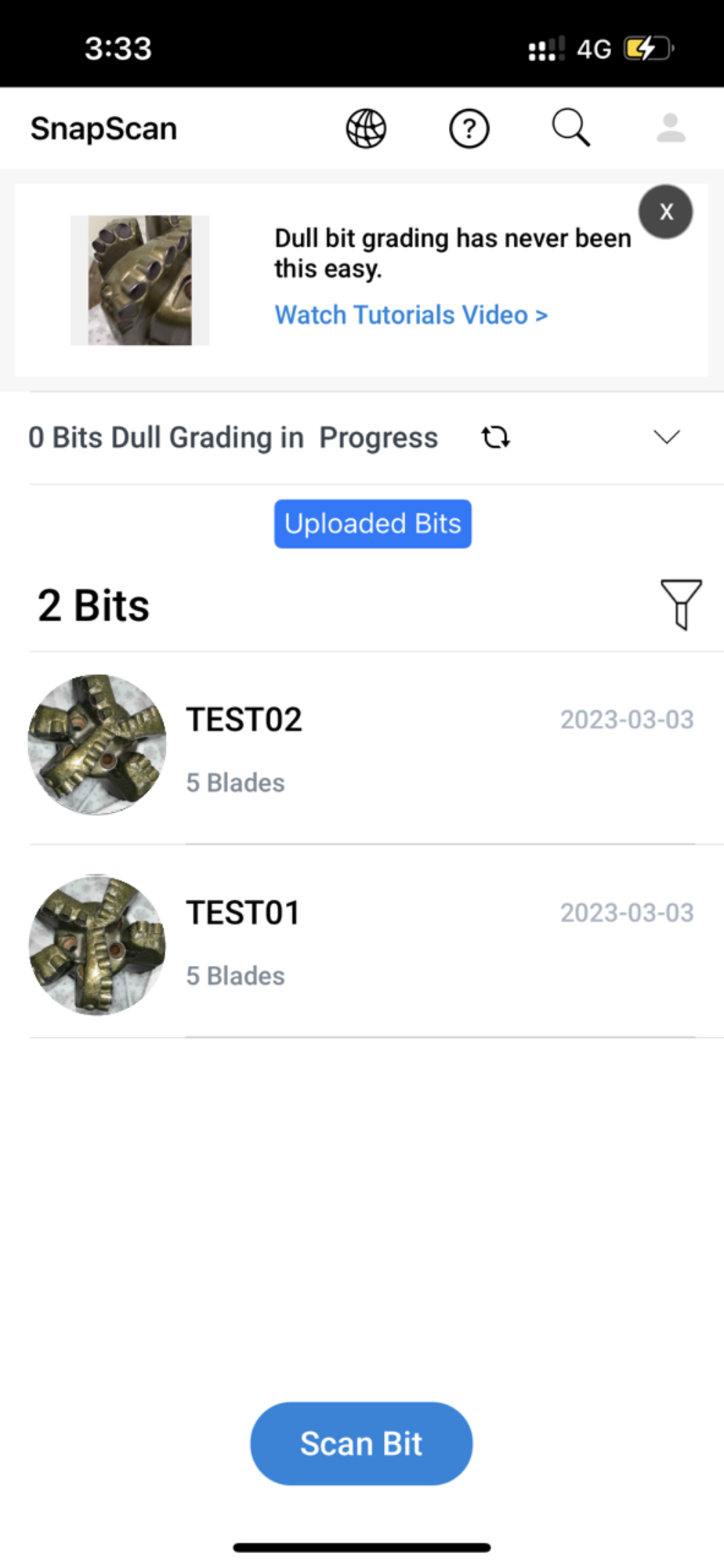 Postrun bit dull grading made quick and easy. SnapScan is the most utilized, accurate and reliable cutter damage analysis system in the market. It supports 3 main aspects: agility, data capture, and forensics analysis. It is elegant in a phone interface, and it is very simple to use. Simple, easy, but powerful: let the machine learning algorithm analyze each PDC cutter and support the correct IADC dull grading generation while organizing your bit pictures.
