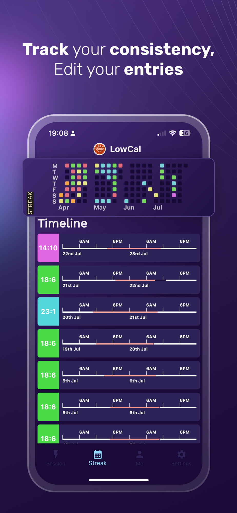 Losing weight can be challenging, but with Intermittent Fasting, you gain control by limiting your eating hours and staying mindful of your calorie intake. LowCal simplifies this process, enabling you to effortlessly log your fasting hours, physical activity, and calorie consumption.