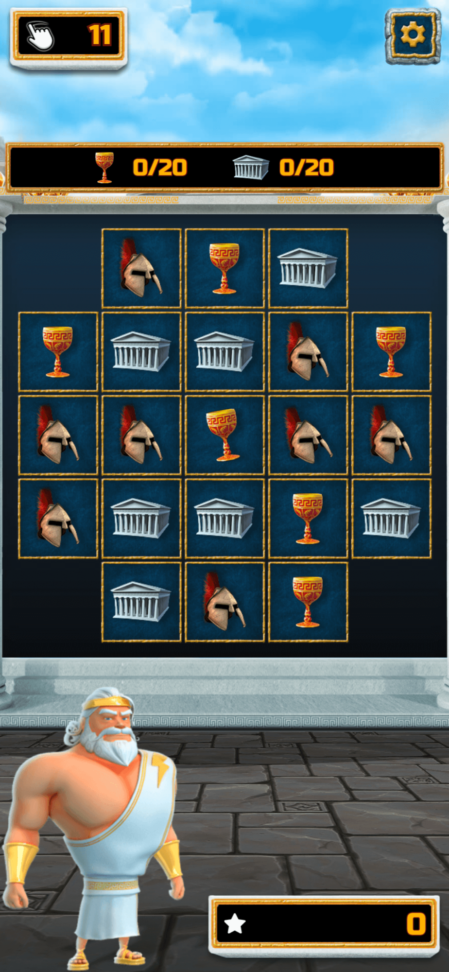 With the power of Zeus' lightning bolt, you can match symbols instantly to group the elements and make them disappear.