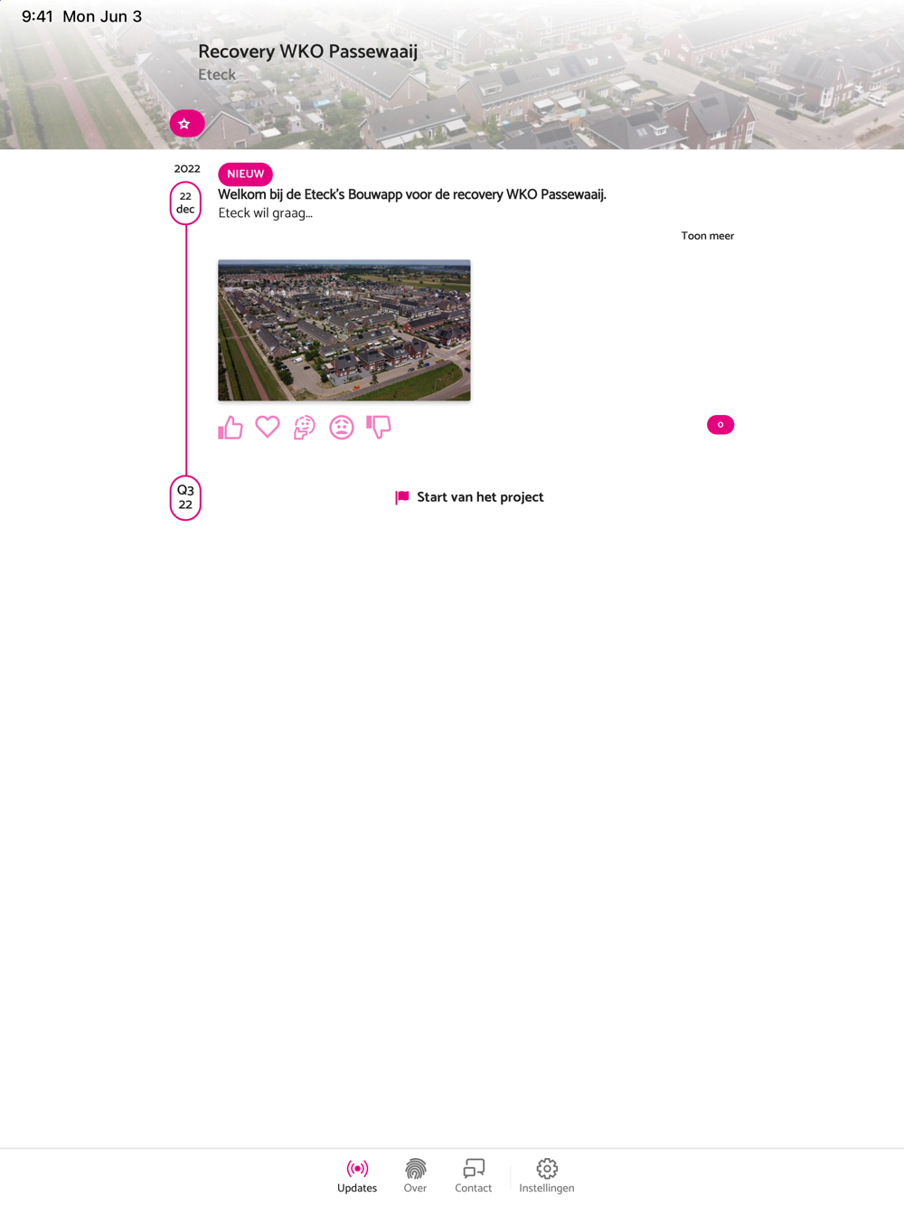 Met de Eteck BouwApp volgt u de recovery van het WKO-systeem (warmte-koudeopslag systeem) Passewaaij te Tiel. Middels de Eteck BouwApp informeren we u graag over de werkzaamheden.