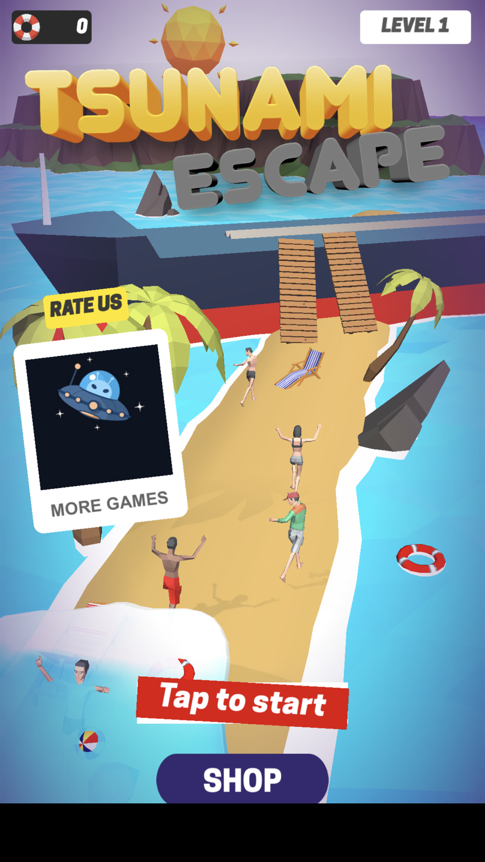 Tsunami Escape is a fun and exciting game. You should use the character in the game to escape from the tsunami and reach the finish line.