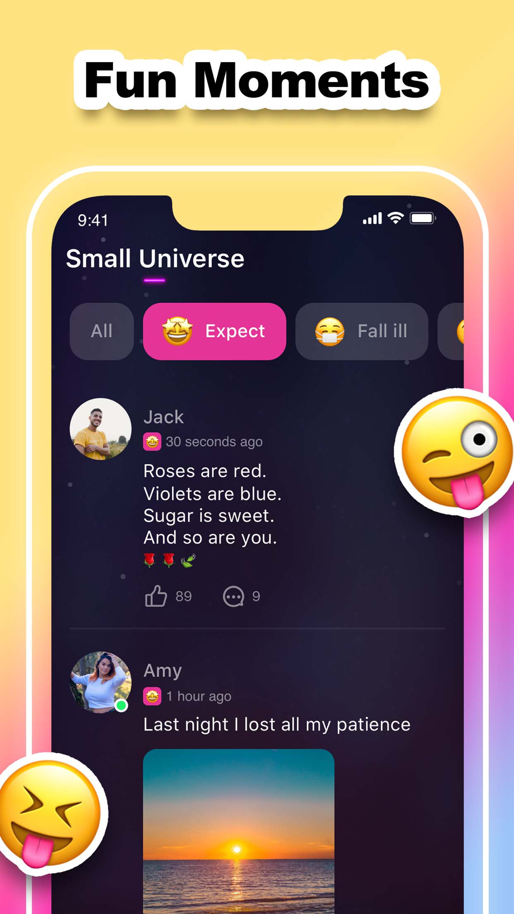 -MOMENTS: With the Moments feature, you can share your thoughts with thousands of Moosh users! See what others are thinking and leave a comment below if you’re interested. Message people if you want to make a deeper connection.