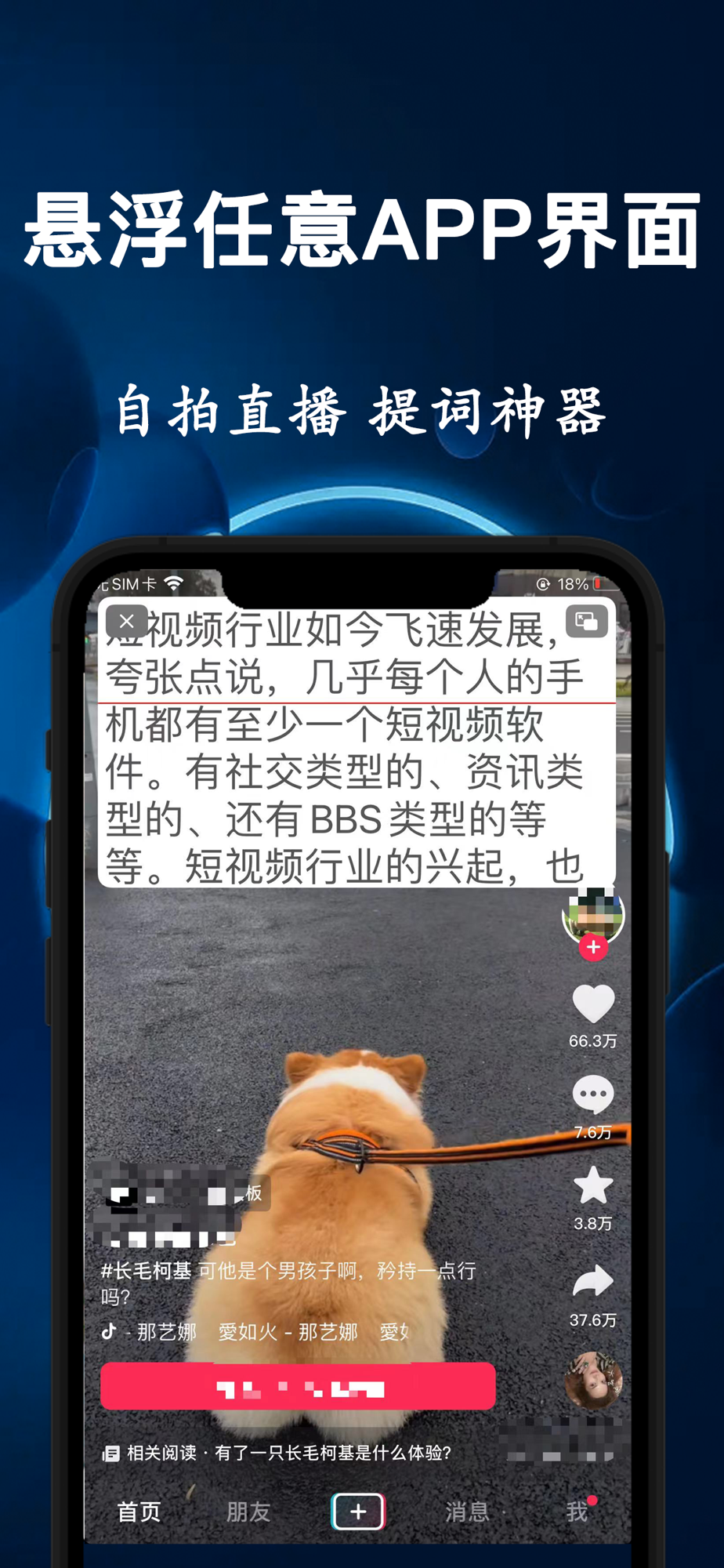 悬浮提词,可以搭配各种拍摄/直播APP使用。