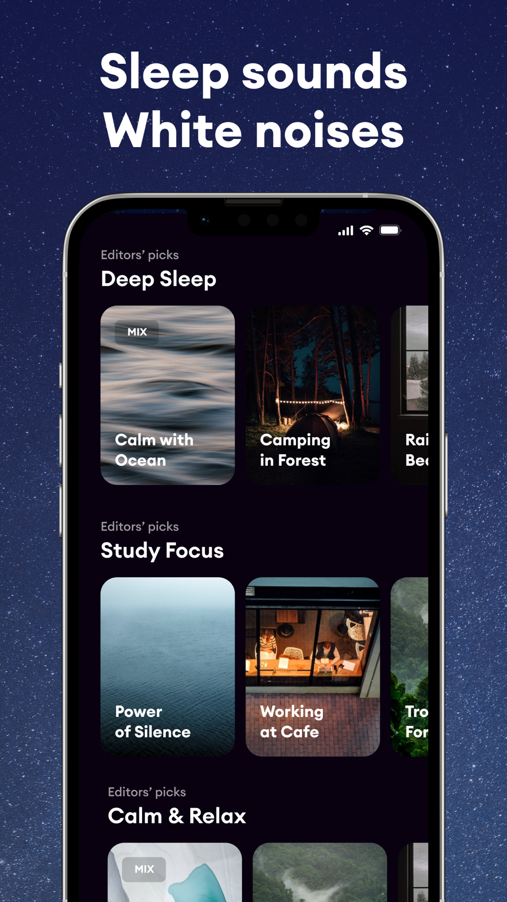 • Sleep sounds: Soothing sounds and healing music for relaxation, focus, and sleep