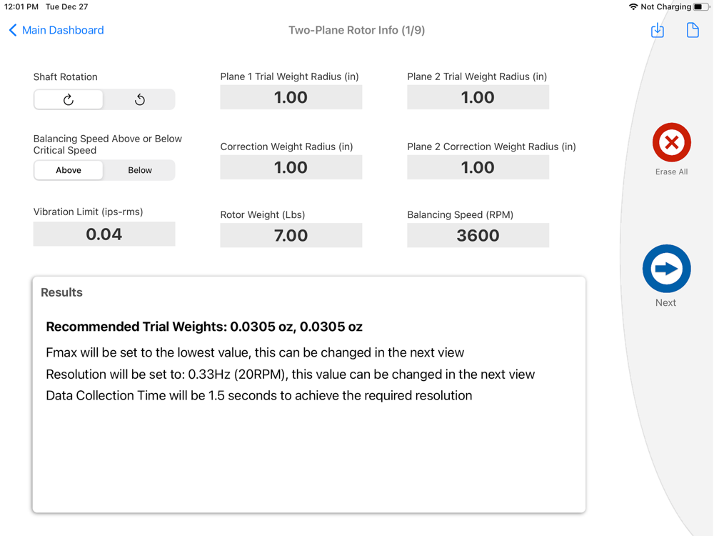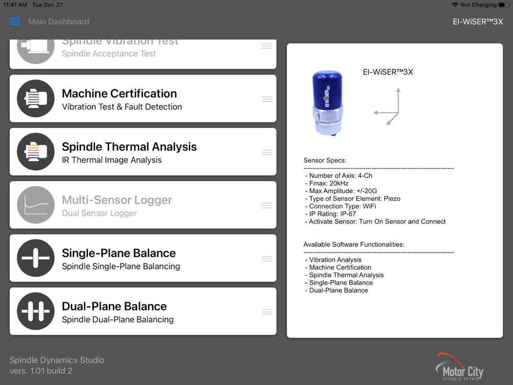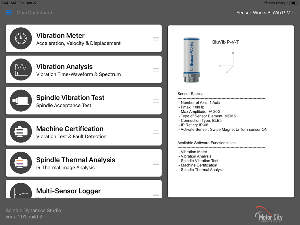 The app is designed to perform Acceptance Testing for Industrial Spindles.