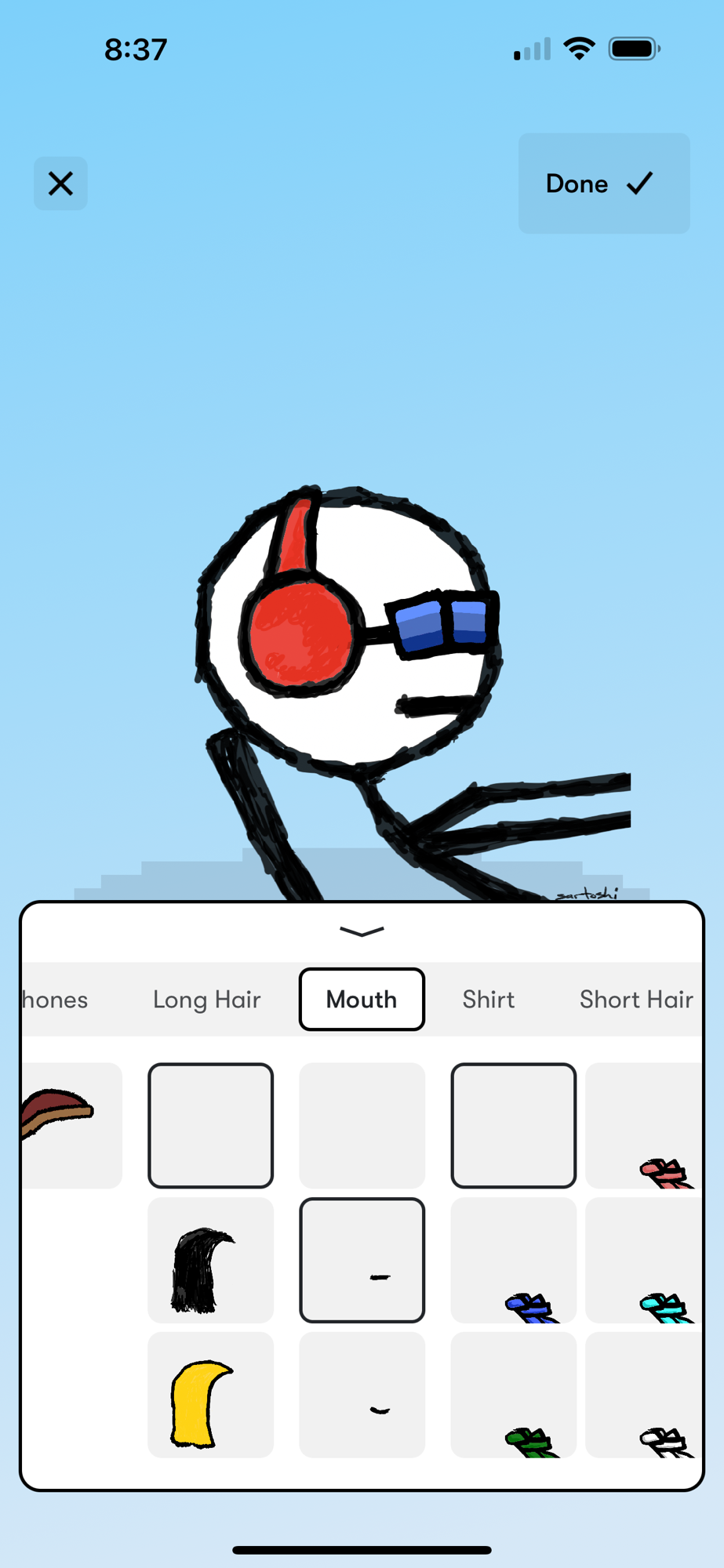 Make your own muffers token or stick figure by swiping through and picking headphones, watches, hoodies, exclusive backgrounds, and more.